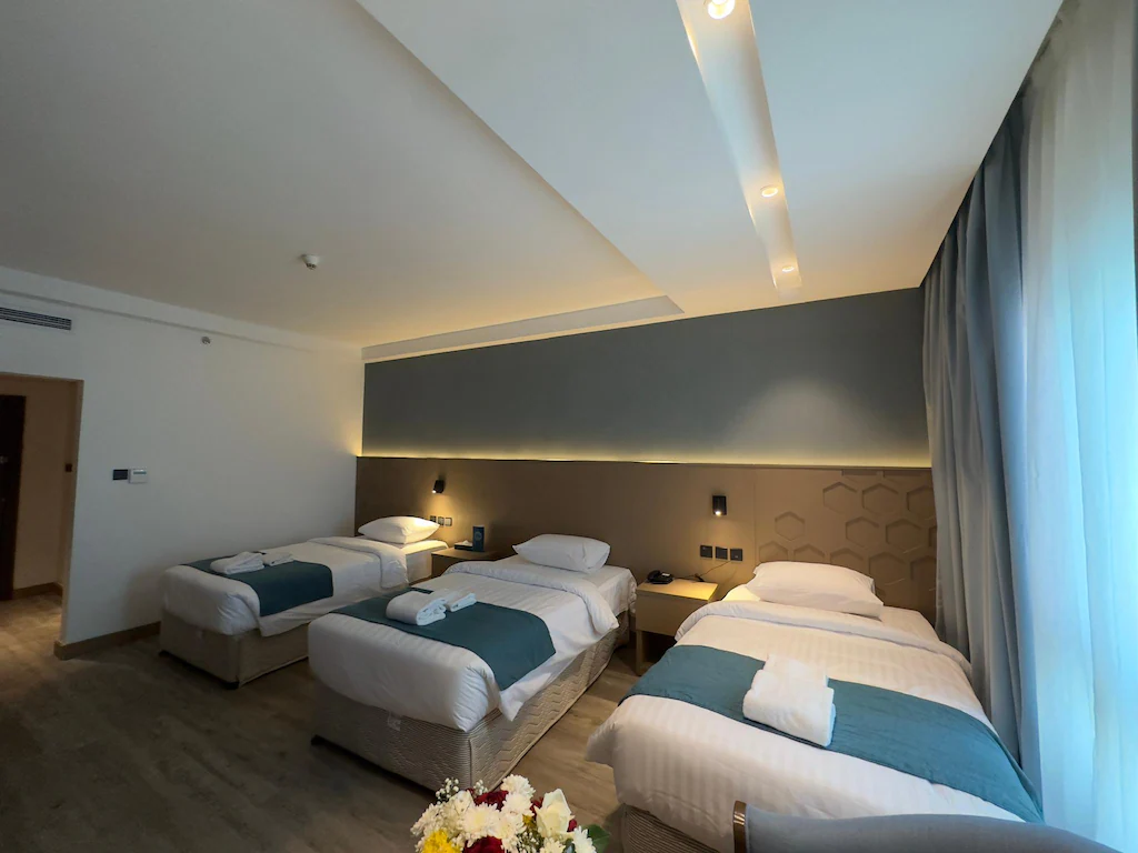 يقع فندق الماسة جراند في مكة المكرمة، ويُعتبر واحدًا من أفضل الفنادق ذات الأربع نجوم التي تقدم تجربة مميزة للزوار. يبعد الفندق حوالي 400 كيلومتر عن مركز المدينة، مما يجعله وجهة مثالية للمسافرين الذين يبحثون عن الراحة والرفاهية. مع 998 غرفة مجهزة بأحدث وسائل الراحة، يوفر الفندق بيئة مثالية للاسترخاء والاستمتاع بإقامة مريحة. يبدأ تسجيل الوصول في فندق الماسة جراند من الساعة 05:00 مساءً، مما يتيح للضيوف الوقت الكافي للوصول والاستقرار بعد يوم طويل من السفر. كما يمكن للضيوف تسجيل المغادرة حتى الساعة 12:00 ظهرًا، مما يوفر لهم المرونة في تنظيم جدولهم. بالإضافة إلى ذلك، يرحب الفندق بالعائلات، حيث يُسمح للأطفال الذين تتراوح أعمارهم بين 3 إلى 12 عامًا بالإقامة مجانًا، مما يجعل فندق الماسة جراند خيارًا مثاليًا للعائلات التي ترغب في زيارة مكة المكرمة.