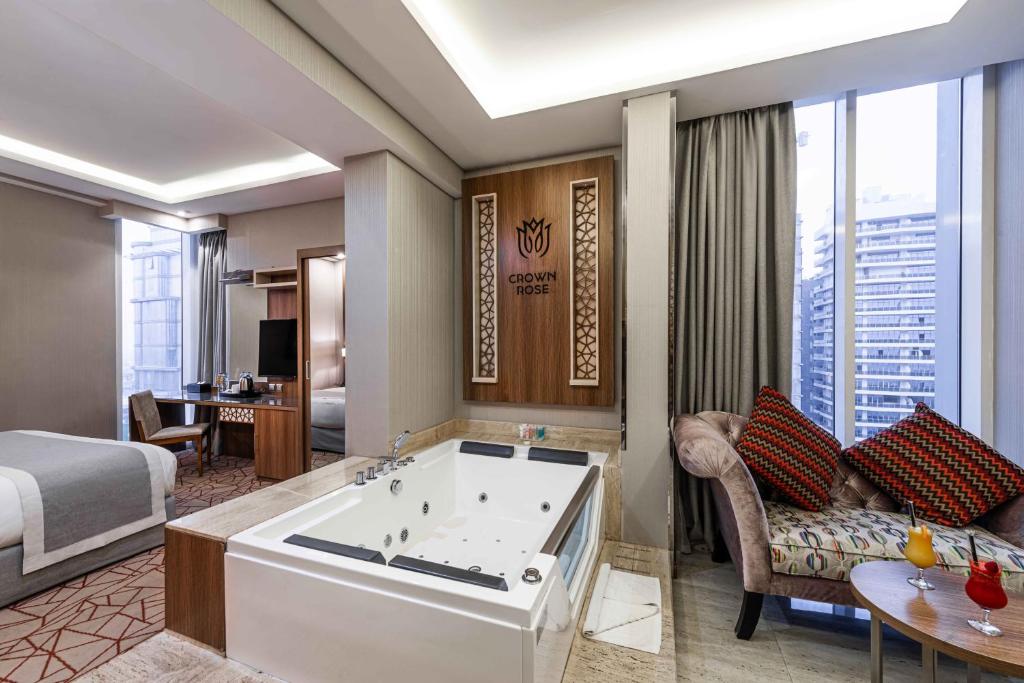 إقامة أنيقة: يقدم فندق كراون روز الصحافة في الرياض تجربة 5 نجوم مع مسبح على السطح، ومرافق سبا، وساونا، ومركز لياقة بدنية، وشرفة شمسية، ومطعم، وبار، وخدمة واي فاي مجانية. وسائل راحة مريحة: يستمتع الضيوف بتسجيل وصول ومغادرة خاص، وخدمة نقل مطار بمقابل، وصالة استراحة، وحمام عام، وغرفة بخار، وباقات عافية، وغرفة لياقة بدنية، وحوض استحمام ساخن، ومكتب استقبال يعمل على مدار 24 ساعة، وخدمة كونسيرج، وغرف عائلية. خيارات تناول الطعام: يقدم المطعم العصري والمناسب للعائلات المأكولات الشرق أوسطية والعالمية والمشويات مع خيارات حلال. يشمل الإفطار وجبات قارية وأمريكية وبوفيه ونباتية وحلال. موقع متميز: يقع الفندق على بُعد 19 كم من مطار الملك خالد الدولي، وبالقرب من معالم سياحية مثل الرياض بارك (9 كم) والورود 2 (13 كم). يقدر الضيوف وجبة الإفطار والموظفين المهتمين ونظافة الغرف.