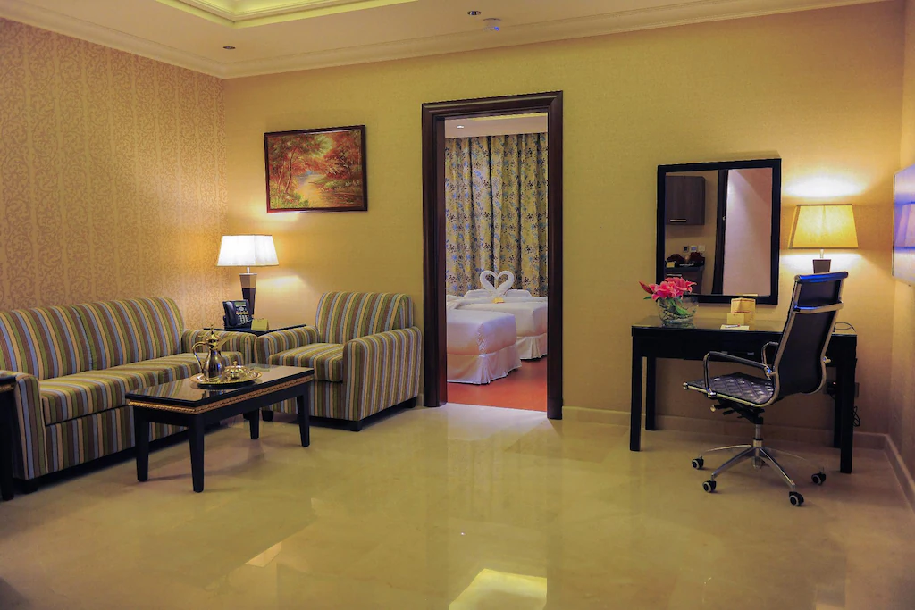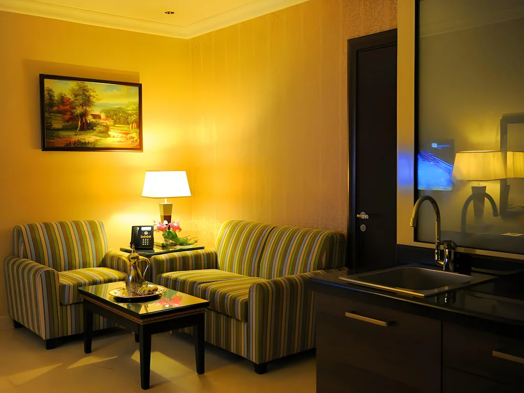 Location Suite Inn Hotel Riyadh is ideally situated in Al Sulaimaniah. Kingdom Center is 4.2 km from Suite Inn Hotel Riyadh. The nearest airport is King Khalid Airport, 29 km from the property. Room All units feature air-conditioning and a satellite flat-screen TV. There is also a kitchen in some of the units, equipped with a microwave and toaster. Each unit comes with a private bathroom and bath robes.