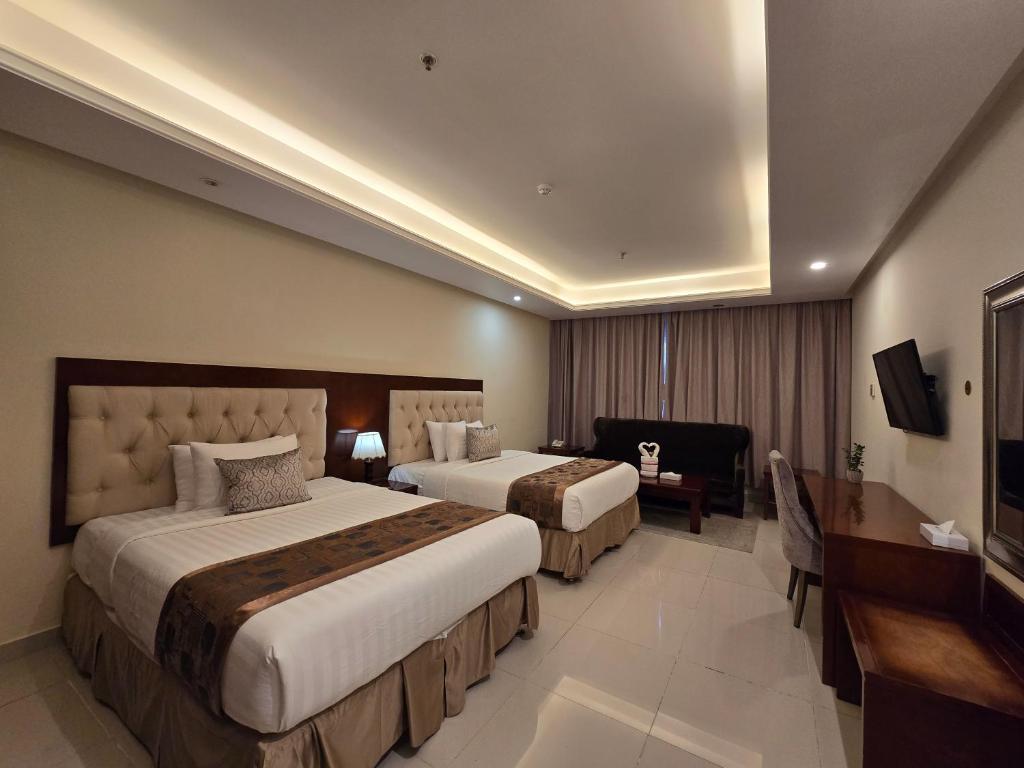 Comfortable Accommodations: Dar Al Wedad in Jeddah offers aparthotel-style accommodations with family rooms. Each unit features air-conditioning, a private bathroom, and a fully equipped kitchen. Exceptional Facilities: Guests enjoy spa facilities, free WiFi, and private check-in and check-out services. Additional amenities include a steam room, wellness packages, and a 24-hour front desk. Convenient Location: Located 5 mi from King Abdulaziz International Airport, the aparthotel is less than 0.6 mi from Jeddah International Exhibition and Convention Center. Nearby attractions include Mall of Arabia and Jeddah Corniche.