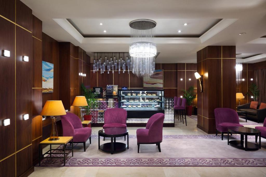 Located just 1640 feet from Al Rashed Shopping Mall, this 5-star hotel offers spacious rooms with satellite TV. It has 3 in-house restaurants and a full-service spa with a pool on site. A mini-bar and a tea/coffee maker are in Crown Plaza Al Khobar’s air-conditioned rooms. Toiletries and a bathrobe are in the private bathrooms. Some offer access to the executive lounge. Panoramic views of Al Khobar can be admired from the Oasis Café. Crowne Plaza Al Khobar has a Moroccan restaurant, and a restaurant with live cooking stations. Various massage treatments can be scheduled at Plaza Al Khobar’s spa. It features 2 separate well-equipped gyms one for ladies and one for men and a sauna. The Al Khobar Corniche is 1.9 mi from Crown Plaza Al Khobar. King Fahd International Airport is 40 minutes’ drive away.