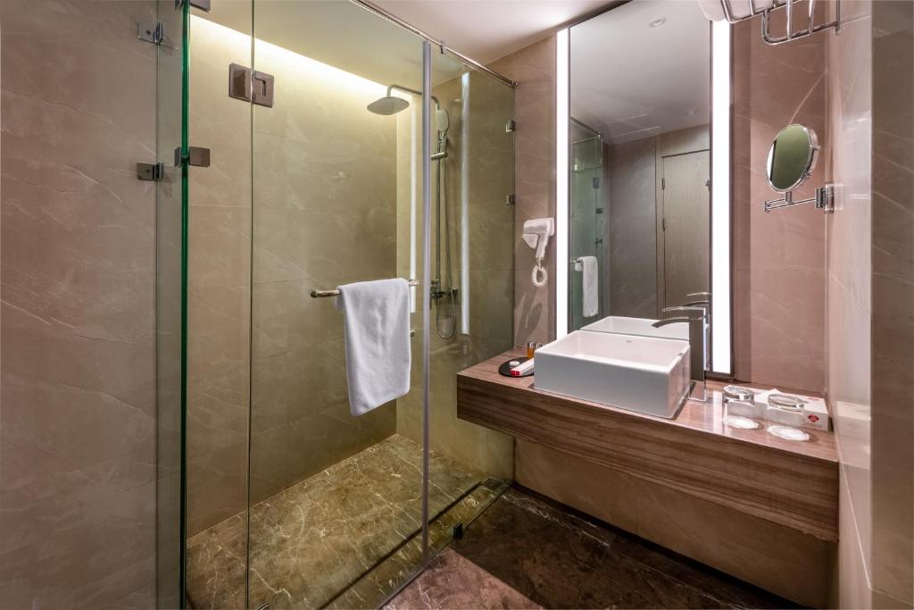 Comfortable Accommodations: Aber Abha in Abha offers family rooms with air-conditioning, free WiFi, and modern amenities. Each room includes a tea and coffee maker, minibar, and work desk. Dining Experience: The family-friendly restaurant serves American and Middle Eastern cuisines with halal options. Guests can enjoy continental, halal, and Asian breakfasts in-room or via room service. Facilities and Services: The hotel features a fitness centre, coffee shop, and free on-site private parking. Additional services include a 24-hour front desk, daily housekeeping, and full-day security. Prime Location: Located 17 km from Abha Airport, Aber Abha is near attractions such as Waterfall Park (2 km) and Al Andalus Park (2.4 km). Guests appreciate the room cleanliness, attentive staff, and convenient location.