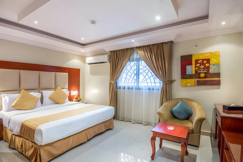 Welcome to Almuhaidb Alolaya Khorais, a hidden gem nestled in the heart of Riyadh, Saudi Arabia. This exquisite hotel offers a tranquil oasis for both business and leisure travelers seeking a luxurious and comfortable stay. With a convenient check-in time starting from 01:00 PM, you can begin your Almuhaidb Alolaya Khorais experience without delay. The hotel's warm and welcoming staff will be ready to assist you upon arrival, ensuring a seamless check-in process. And when it's time to bid farewell, you have until 03:30 PM to check-out, allowing for a leisurely departure. Almuhaidb Alolaya Khorais boasts 34 thoughtfully designed rooms, each exuding an air of elegance and sophistication. Whether you choose a cozy standard room or opt for a spacious suite, you'll find yourself immersed in comfort and tranquility. The rooms are tastefully furnished with modern amenities, ensuring a restful stay for every guest. Families traveling with children will appreciate the hotel's generous child policy. Children between the ages of 3 to 21 can stay free of charge, making Almuhaidb Alolaya Khorais an ideal choice for a family getaway. Create lasting memories with your loved ones as you explore the vibrant city of Riyadh, knowing that your little ones are well taken care of. Escape the hustle and bustle of the city and unwind in the serene ambiance of Almuhaidb Alolaya Khorais. Book your stay today and experience the perfect blend of comfort, convenience, and luxury in the heart of Riyadh.