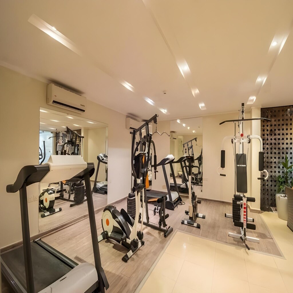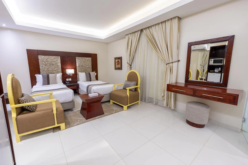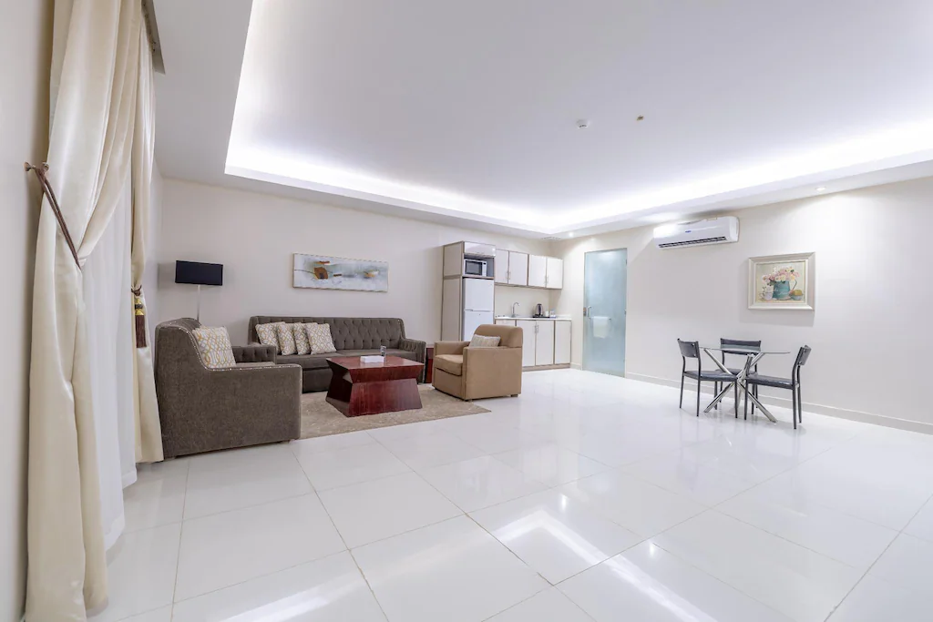 Location Located in Riyadh #039;s Sulaimaniyah district, skyscraper, is an 8-minute walk from Al Muhaidb Apartment. Al Faisaliah Commercial Center is a 3-minute drive away. Rooms Each apartment has a living room with a hot tub and a flat-screen TV. The studios are fitted with tiled floors and are carpeted. The kitchenette has a microwave, an electric kettle and a refrigerator. Amenities The hotel has a 24-hour front desk and free on-site private parking.