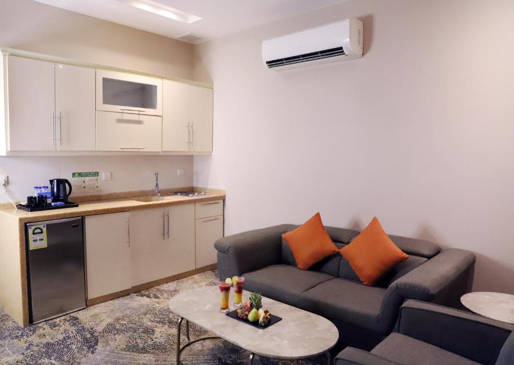 Comfortable Accommodations: Banan Serviced Apartments in Tabuk offers adults-only rooms with air-conditioning, private bathrooms, and fully equipped kitchens. Each room includes a bidet, walk-in shower, refrigerator, free toiletries, and a TV. Essential Facilities: Guests enjoy free WiFi in public areas, a elevator, 24-hour front desk, coffee shop, and room service. Free on-site parking is available, ensuring convenience for all visitors. Dining Options: The on-site restaurant serves a variety of delicious meals, highly praised by guests for its quality and service. Convenient Location: Located 7.5 mi from Tabuk Regional Airport, the hotel provides easy access to local attractions.