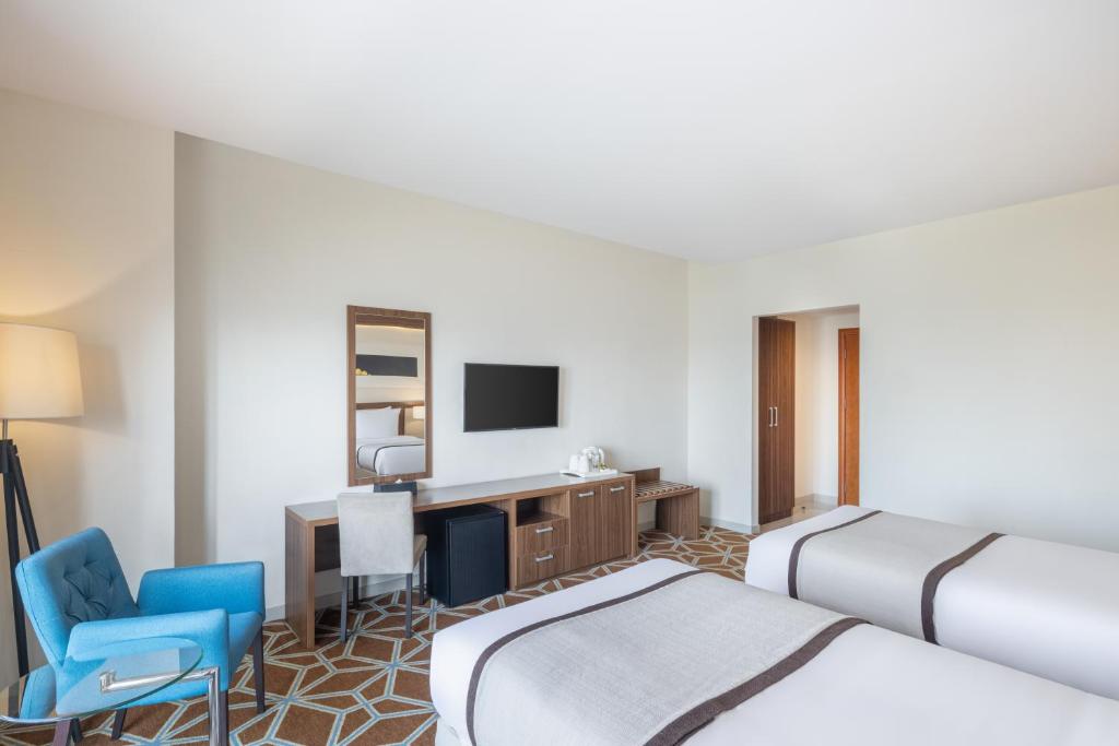 Blue Coral Hotel فندق المرجان provides free WiFi and rooms with air conditioning in Makkah. Located around 2.1 mi from Masjid Al Haram, the hotel is also 2.3 mi away from Abraj Al Bait. Safwah tower is 2.3 mi away. At the hotel, each room has a wardrobe and a flat-screen TV. The rooms are equipped with a private bathroom with a shower, free toiletries and a hair dryer. The units will provide guests with a fridge. Guests at Blue Coral Hotel فندق المرجان can enjoy a à la carte breakfast. Speaking Arabic, English and Urdu at the reception, staff are willing to help at any time of the day. Hira Cave is 5 mi from the accommodations, while Um AlQura University is 5 mi from the property. King Abdulaziz International Airport is 45 mi away.