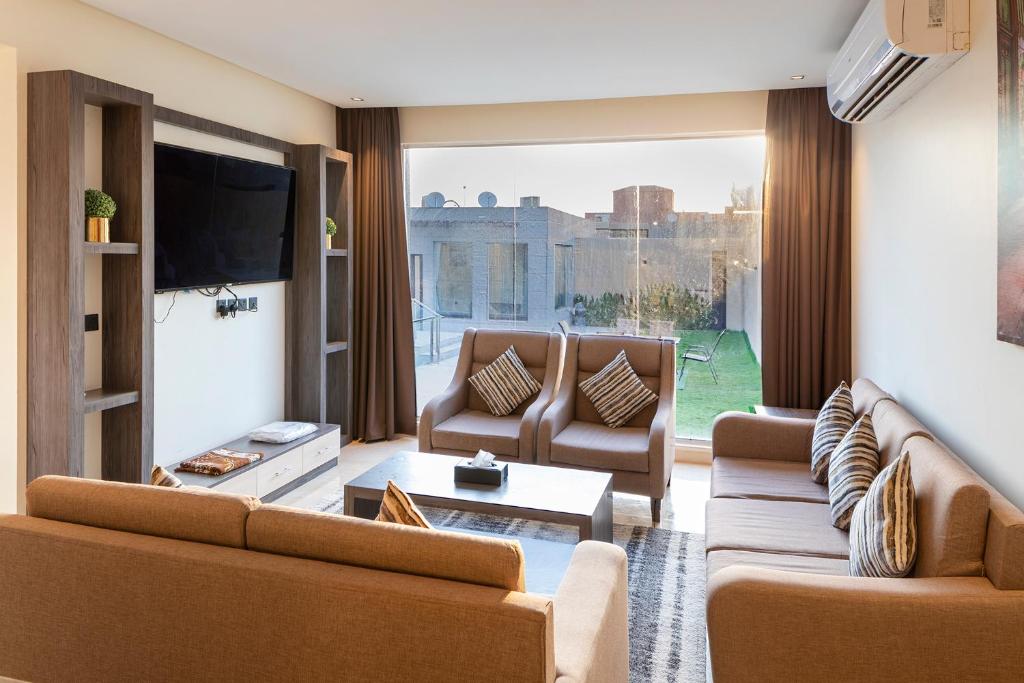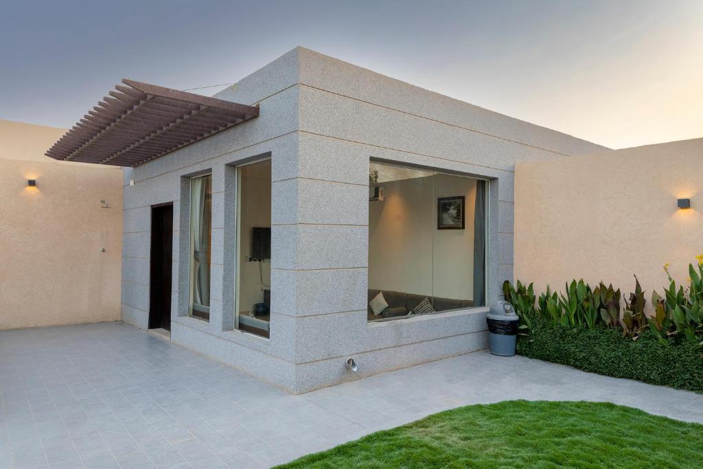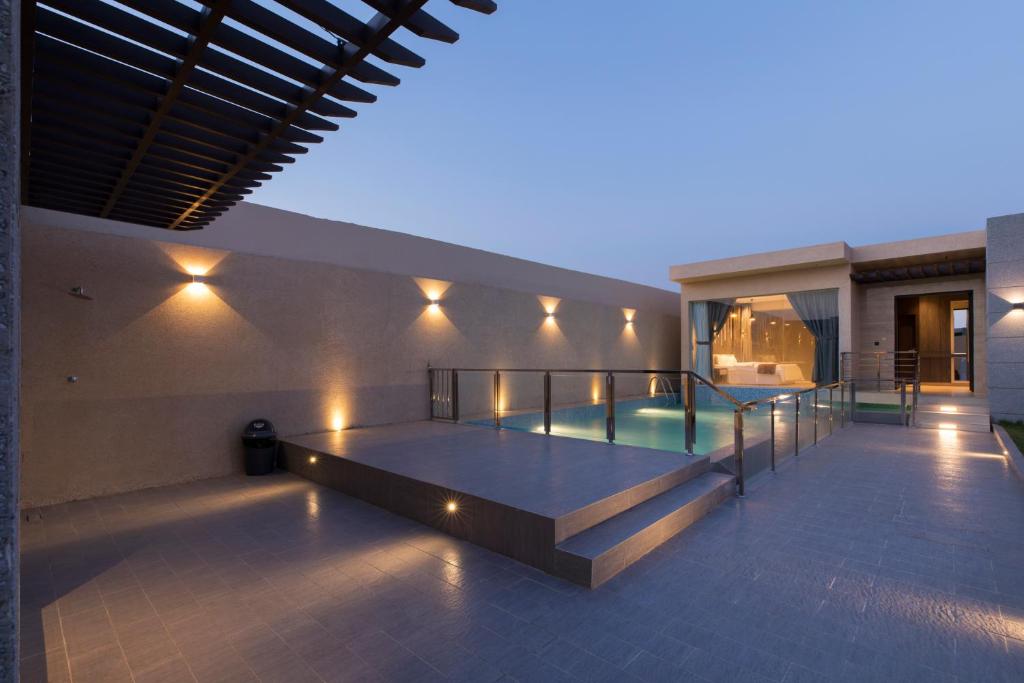 Elegant Accommodations: Fi Resorts - Riyadh in Riyadh offers family rooms with air-conditioning, private bathrooms, and modern amenities. Guests enjoy free WiFi, a swimming pool with a view, sun terrace, and lush garden. Comfortable Facilities: The resort features a 24-hour front desk, private check-in and check-out, outdoor fireplace, and barbecue facilities. Additional amenities include a picnic area, outdoor seating, and daily housekeeping service. Prime Location: Located 4.3 mi from King Khalid International Airport, the resort is near attractions such as Al Nakheel Mall (16 mi) and Riyadh Park (20 mi). Guests appreciate the swimming pool, room cleanliness, and attentive staff.