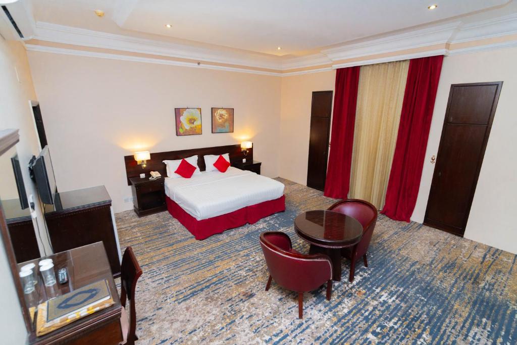 Comfortable Accommodations: Dar Raies Hotel in Makkah offers family rooms with air-conditioning, private bathrooms, bidets, refrigerators, free toiletries, showers, and TVs. Each room includes a hairdryer for added convenience. Essential Facilities: Guests enjoy free WiFi, a elevator, 24-hour front desk, full-day security, and room service. Free off-site parking is available, and the hotel staff speak Arabic and English. Prime Location: Located 55 mi from King Abdulaziz International Airport, the hotel is near Masjid Al Haram (4.3 mi), Zamzam Well (3.7 mi), and Makkah Museum (2.5 mi). Guests appreciate the attentive staff, convenient location, and room cleanliness.