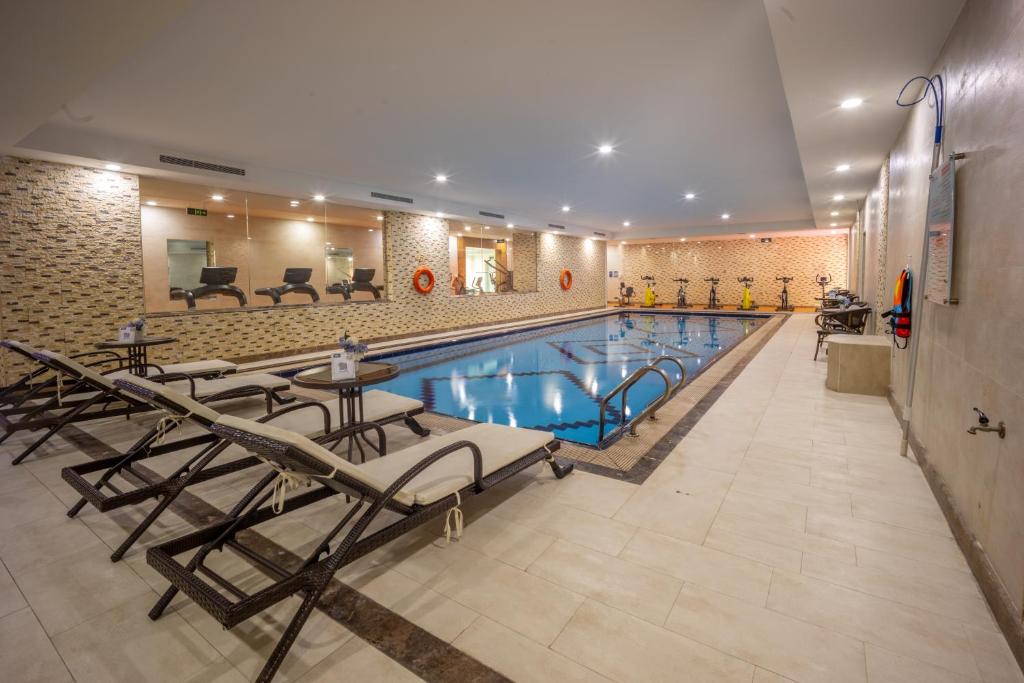 Comfortable Accommodations: Donatello Jeddah Hotel in Jeddah offers comfortable rooms with air-conditioning, private bathrooms, and modern amenities. Guests enjoy mountain or city views, ensuring a pleasant stay. Wellness and Leisure: The hotel features a spa and wellness center, sauna, fitness center, indoor and plunge pools, and water sports facilities. Free WiFi is available throughout the property. Dining Experience: A variety of cuisines are served at the restaurant, including Italian, Middle Eastern, and Asian. Breakfast options include continental and buffet with local specialties, warm dishes, and fresh pastries. Convenient Location: Located 4.3 mi from King Abdulaziz International Airport, the hotel is near attractions such as Mall of Arabia (6.8 mi) and Jeddah Corniche (16 mi). Free on-site private parking is provided.