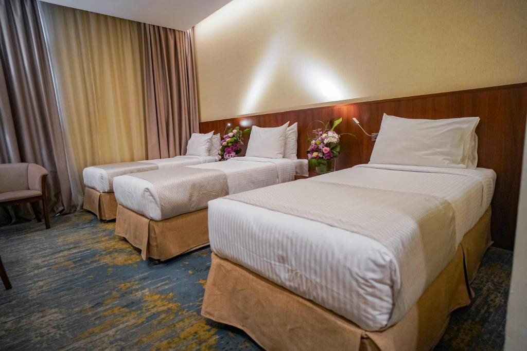 Comfortable Accommodations: Emaar Elite Hotel in Makkah offers 3-star comfort with free WiFi, air-conditioning, and private check-in and check-out services. Each room includes a bidet, walk-in shower, refrigerator, and TV. Convenient Facilities: Guests benefit from a shuttle service, elevator, 24-hour front desk, concierge, housekeeping, and full-day security. Additional amenities include a seating area, free toiletries, and tiled floors. Prime Location: Located 58 mi from King Abdulaziz International Airport, the hotel is a short walk from Masjid Al Haram (19 minutes) and Zamzam Well (1 mi). Nearby attractions include Makkah Museum (3.7 mi) and Hira Cave (5.6 mi). Guest Satisfaction: Guests appreciate the room cleanliness, attentive staff, and convenient location.