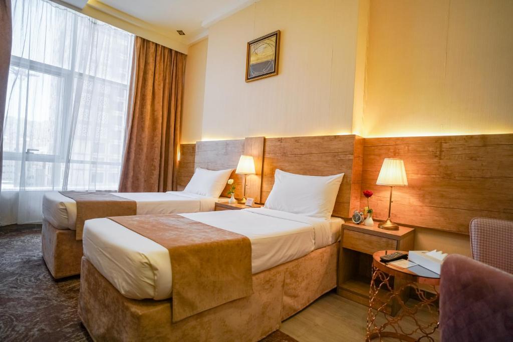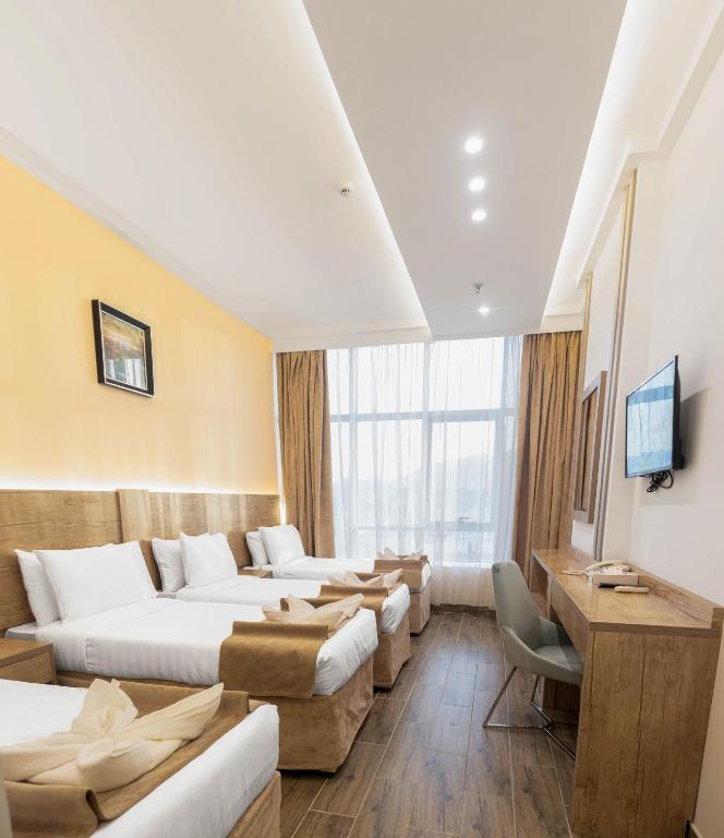 Comfortable Accommodations: Emaar Legend in Makkah offers 2-relax in air-enjoy relax in rooms equipped with private bathrooms, free WiFi, and modern amenities. Each room includes a work desk, TV, and soundproofing for a comfortable stay. Convenient Facilities: Guests benefit from free WiFi in public areas, a 24-hour front desk, shuttle service, and elevator access. The hotel provides a range of services including room cleanliness, staff support, and a convenient location. Prime Location: Located 62 mi from King Abdulaziz International Airport, the hotel is a short walk from Um AlQura University (17 minutes) and close to Masjid Al Haram (4.3 mi). Nearby attractions include Hira Cave (5 mi) and Zamzam Well (4.3 mi).