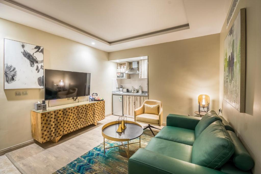 Comfortable Accommodations: Ewaa Express Hotel - Gaber in Riyadh offers family rooms with air-conditioning, kitchenettes, and private bathrooms. Each room includes a TV, wardrobe, and free WiFi. Convenient Facilities: Guests enjoy free on-site private parking, a 24-hour front desk, and a elevator. Additional amenities include a business area, indoor play area, and children's playground. Prime Location: Located 30 mi from King Khalid International Airport, the hotel is near attractions such as Saqr Aljazeera Aviation Museum (8.1 mi) and Al Nakheel Mall (9.3 mi). Guest Satisfaction: Highly rated for room cleanliness, staff support, and comfort.