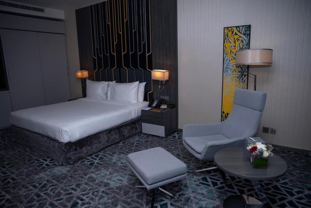 The Executives Hotel KAFD is strategically located in the heart of Riyadh, offering guests unparalleled access to the city's major attractions and entertainment venues. With seamless connectivity via the Riyadh Metro, the hotel ensures convenient exploration of the entire city. Nearby Attractions: Riyadh Park (4 minutes by car, 2.4 mi): A premier shopping and entertainment destination. King Abdullah Financial District (KAFD) and Metro Station (4 minutes by car, 2.1 mi): Home to a central metro hub, providing easy city-wide transport. Boulevard Riyadh City and Boulevard World (12 minutes by car, 5.8 mi): Hosts top-tier events and festivals. Accessible via KAFD Metro Station: Kingdom Tower and Al Faisaliah Tower: Explore panoramic views and shopping via the Blue Line. Saudi National Museum and King Abdulaziz Historical Center: Dove into culture and history via the Blue Line. King Abdullah Park: Relax amid nature via the Red Line. King Khalid International Airport: Reachable via the Yellow Line for effortless travel. Wadi Hanifa and Historical Diriyah: Enjoy natural and historical landmarks with the metro's connectivity. Choose our hotel for its prime location and exceptional services that ensure a comfortable stay and an unforgettable experience.