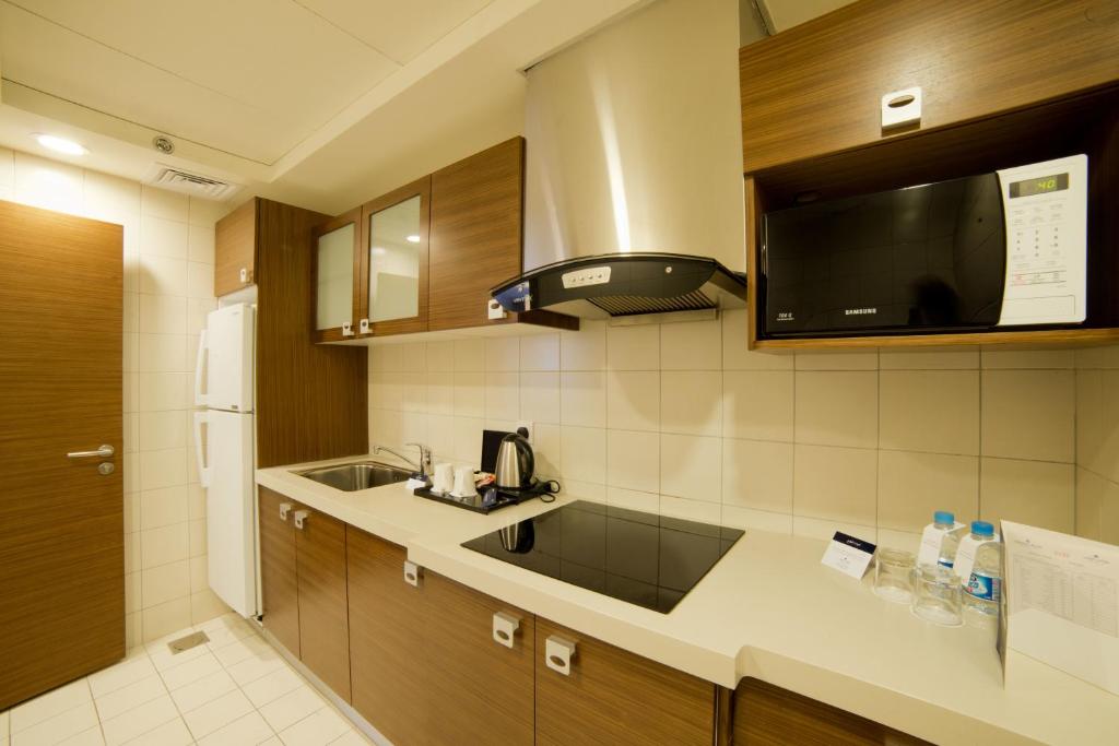 Dining Experience: The modern, family-friendly restaurant serves international cuisine with halal and vegetarian options. Breakfast includes fresh pastries, fruits, and juices.