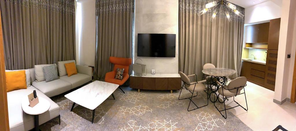 Grand Plaza Hotel - KAFD Riyadh is situated in Riyadh, within 4.1 km of Riyadh Park and 5.9 km of Riyadh Gallery Mall. This 4-star hotel offers room service, a 24-hour front desk and free WiFi. The hotel has a sun terrace and an indoor pool. At the hotel, the rooms include a wardrobe. Complete with a private bathroom fitted with a bidet and free toiletries, all rooms at Grand Plaza Hotel - KAFD Riyadh have a flat-screen TV and air conditioning, and some rooms are fitted with a seating area. All units will provide guests with a fridge. DIR\x92IYYAH is 10 km from the accommodation, while King Khalid Grand Mosque is 12 km from the property. The nearest airport is King Khalid International Airport, 28 km from Grand Plaza Hotel - KAFD Riyadh.