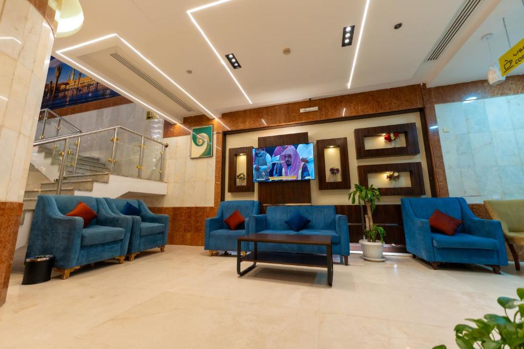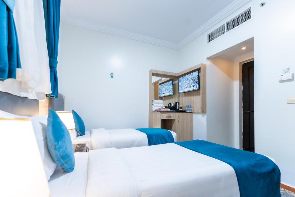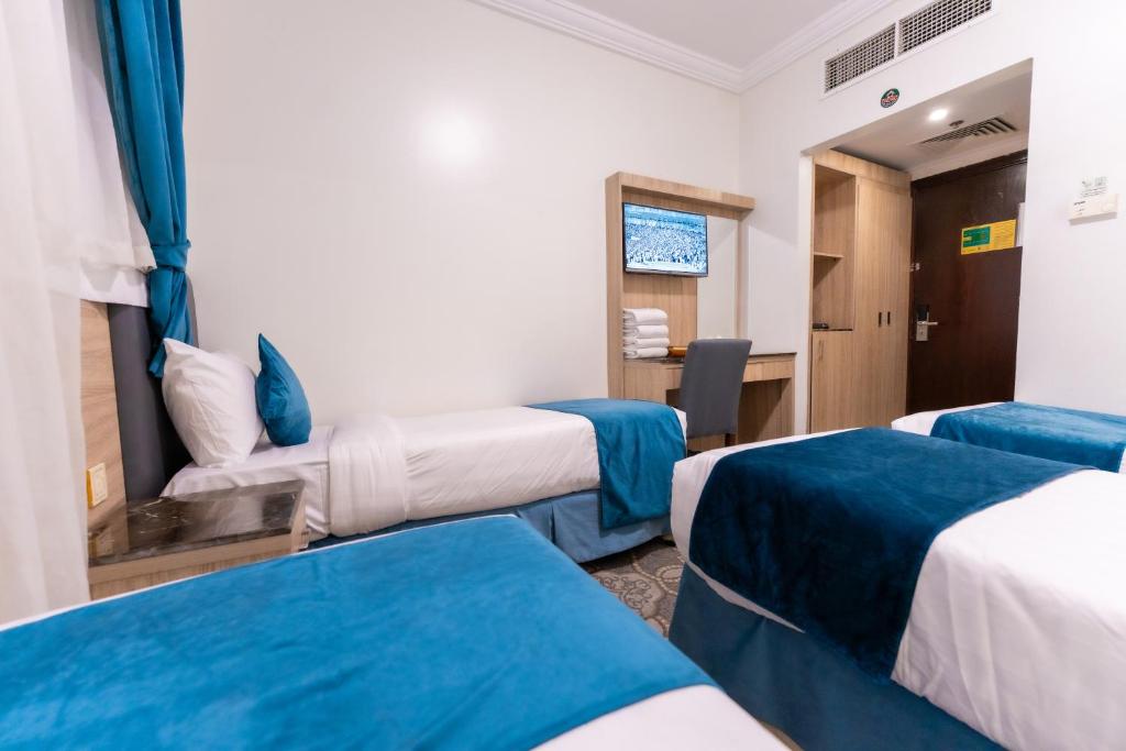 Prime Location: Hayah Al Huda in Medina offers a convenient location with Al-Masjid an-Nabawi less than 0.6 mi away. Prince Mohammad bin Abdulaziz International Airport is 8.7 mi from the hotel. Comfortable Accommodations: Rooms feature air-conditioning, private bathrooms, work desks, showers, and TVs. Additional amenities include electric kettles and free WiFi. Guest Services: The hotel provides a 24-hour front desk and room service. Reception staff speak Arabic, Bengali, English, Hindi, and Urdu. Nearby Attractions: Nearby points of interest include Qiblatain Mosque (2.9 mi), Quba Mosque (3.1 mi), Mount Uhud (5 mi), and Al Hukeer Lowna Park (5 mi).