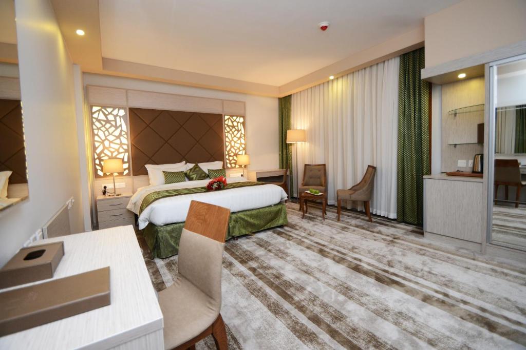 Attractively located in the center of Al Madinah, Le Bosphorus Al Madinah features continental breakfast and free WiFi throughout the property. The property is located less than 0.6 mi from Al-Masjid an-Nabawi, 3.3 mi from Quba Mosque and 3.5 mi from Qiblatain Mosque. The accommodations offers a shared lounge, room service and currency exchange for guests. The rooms at the hotel come with air conditioning, a seating area, a flat-screen TV with satellite channels, a safety deposit box and a private bathroom with a shower, free toiletries and a hairdryer. The units will provide guests with a fridge. Le Bosphorus Al Madinah also provides a business center and guests can use the on-site ATM machine or use the fax machine and photocopier at the accommodations. Speaking Arabic, English, Indonesian and Urdu, staff at the 24-hour front desk can help you plan your stay. Mount Uhud is 5 mi from Le Bosphorus Al Madinah, while Al Hukeer Lowna Park is 5.2 mi from the property. The nearest airport is Prince Mohammad bin Abdulaziz International Airport, 9.3 mi from the hotel.
