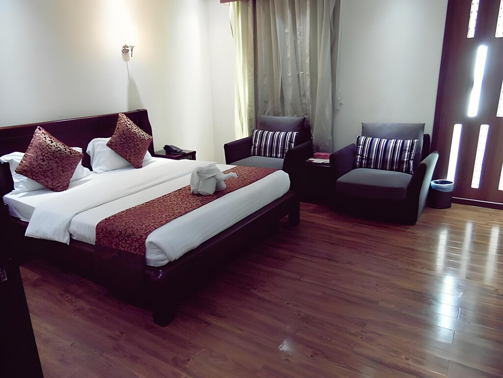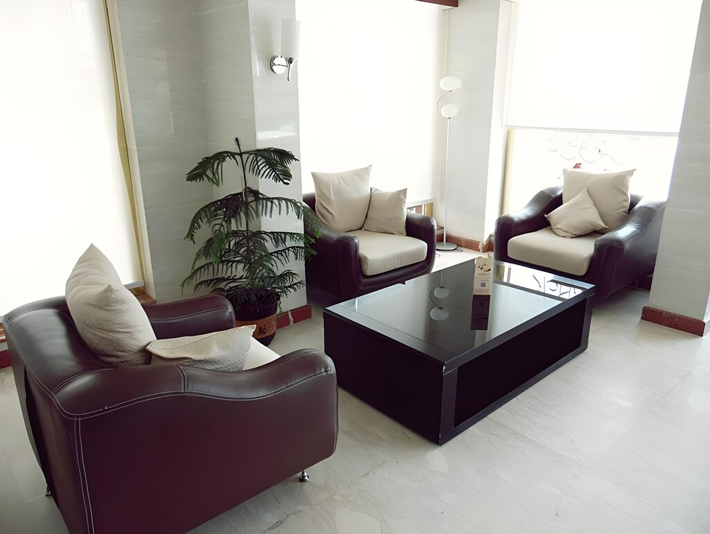 Welcome to Lina Park Hotel Suites, a luxurious accommodation nestled in the heart of Al-Khobar, Saudi Arabia. With its prime location just 5 kilometers away from the city center, this hotel offers a perfect blend of convenience and tranquility. Step into the elegant lobby of Lina Park Hotel Suites and be greeted by the warm and friendly staff, ready to cater to your every need. The hotel boasts a total of 36 beautifully appointed rooms, ensuring a comfortable and unforgettable stay for every guest. Whether you are traveling for business or leisure, you will find the perfect room to suit your preferences. Check-in time at Lina Park Hotel Suites begins at 02:00 PM, allowing you ample time to settle in and unwind after your journey. The hotel's check-out time is until 12:00 PM, giving you a leisurely morning to enjoy a delicious breakfast or take a refreshing dip in the hotel's swimming pool. If you have any little ones accompanying you, rest assured that children between the ages of 0 to 1 can stay free of charge, making it an ideal choice for families.