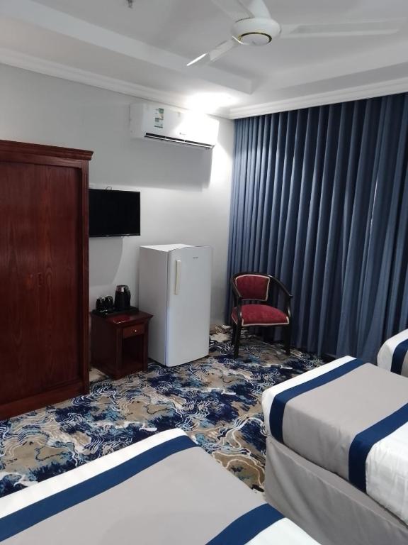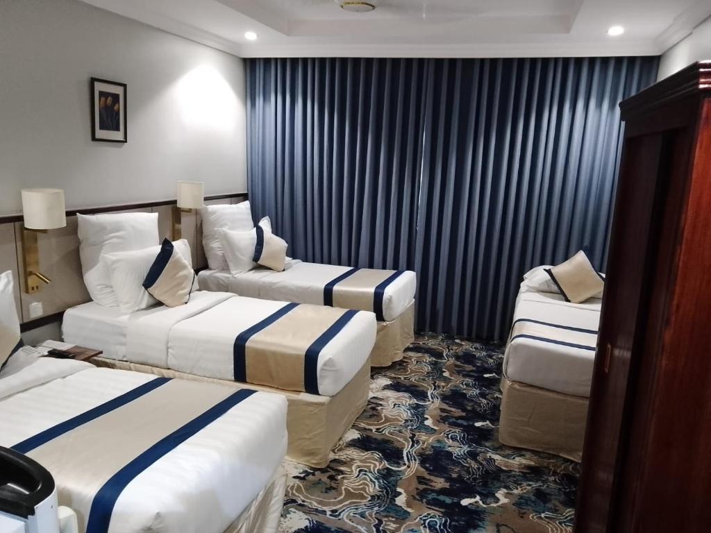 Comfortable Accommodations: Manar Al Azhar Hotel in Az Zahrāʼ offers family rooms with air-conditioning, private bathrooms, and city views. Each room includes a bidet, free toiletries, and a mini-bar. Essential Facilities: Guests enjoy free WiFi, a elevator, 24-hour front desk, concierge service, and a minimarket. Additional services include daily housekeeping, room service, and express check-in and check-out. Prime Location: Located 57 mi from King Abdulaziz International Airport, the hotel is a short walk from Masjid Al Haram and Zamzam Well. Nearby attractions include Makkah Museum and Jabal Thawr.