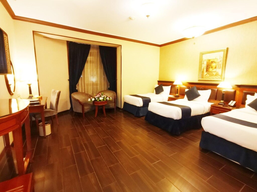 Location Situated in Al Madinah, minutes from Al-Masjid an-Nabawi Rooms At the hotel, rooms have a wardrobe, a flat-screen TV and a private bathroom Amenities Hotel features air-conditioned accommodation and a bar. Among the facilities of this property are a restaurant, a 24-hour front desk and room service, along with free WiFi throughout the property. The hotel has family rooms