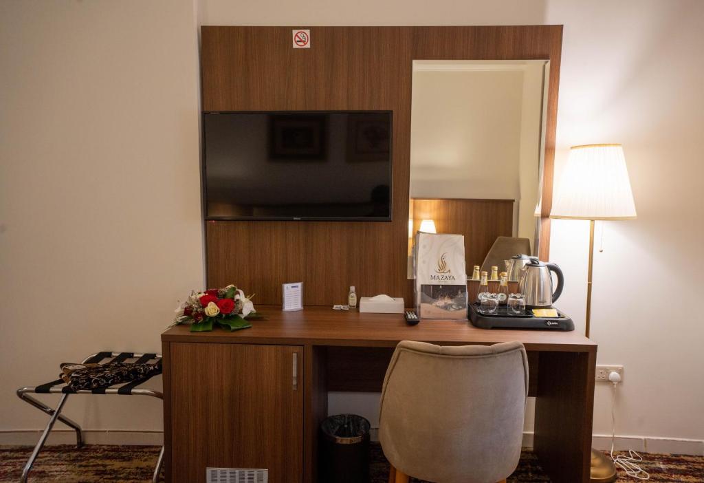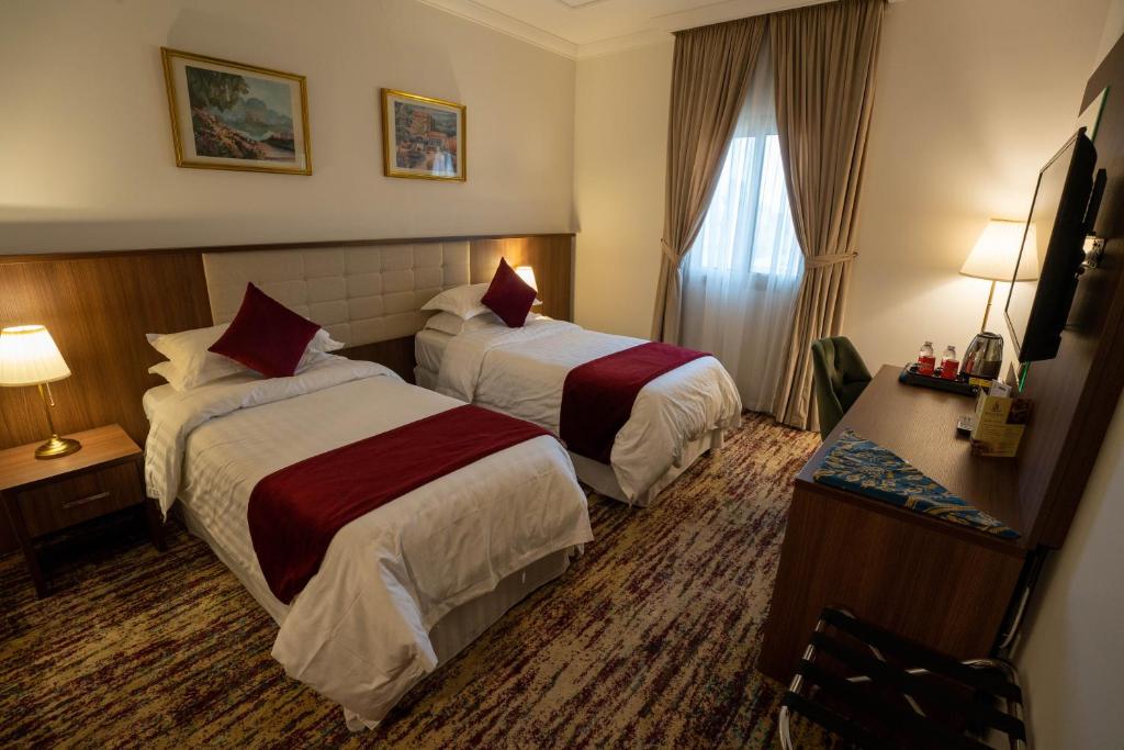 Comfortable Accommodations: فندق مزايا in Az Zāhir offers air-conditioned rooms with private bathrooms, walk-in showers, and free WiFi. Each room includes a refrigerator, TV, and wardrobe, ensuring a pleasant stay. Convenient Facilities: Guests benefit from private check-in and check-out, a elevator, 24-hour front desk, daily housekeeping, full-day security, room service, and luggage storage. The hotel provides free toiletries, slippers, and carpeted floors for added comfort. Prime Location: Located 57 mi from King Abdulaziz International Airport, the hotel is a 16-minute walk from Makkah Museum. Nearby attractions include Masjid Al Haram (5 mi) and Hira Cave (5.6 mi). Highly rated for its attentive staff and room cleanliness.