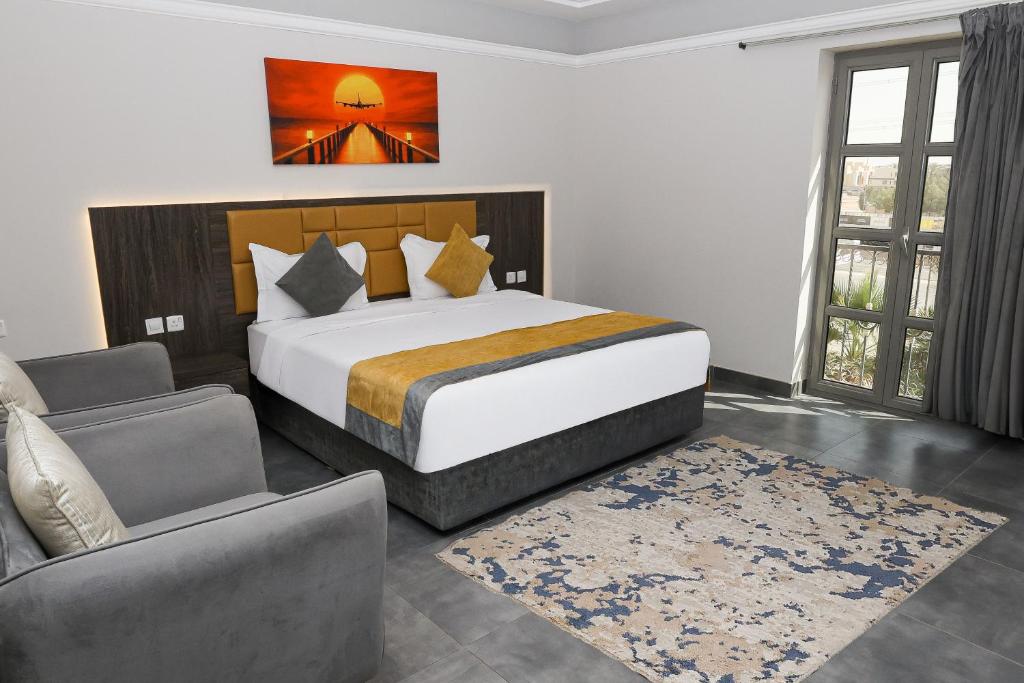 Comfortable Accommodations: Tura Residence Qurtuba in Riyadh offers aparthotel-style accommodations with free WiFi, air-conditioning, and private bathrooms. Each unit includes a kitchenette, balcony with city views, and a work desk. Convenient Facilities: Guests enjoy free on-site parking, a lounge, elevator, 24-hour front desk, concierge service, minimarket, daily housekeeping, hairdresser/beautician, family rooms, full-day security, bicycle parking, and express check-in and check-out services. Prime Location: Located 9.3 mi from King Khalid International Airport, the aparthotel is near Al Nakheel Mall (6.2 mi), Saqr Aljazeera Aviation Museum (6.2 mi), and Riyadh Park (9.9 mi). Guests appreciate the convenient location and connectivity to the airport.