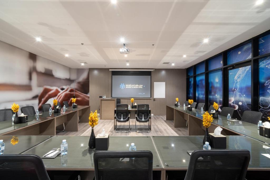Comfortable Accommodations: Msharef Almoden hotel in Riyadh offers family rooms with air-conditioning, private bathrooms, and city views. Each room includes a work desk, TV, and soundproofing for a pleasant stay. Wellness and Leisure: Guests can enjoy spa facilities, a sauna, and an outdoor swimming pool. The hotel features a fitness room, steam room, and hammam for relaxation and exercise. Dining Experience: The modern, family-friendly restaurant serves halal Italian, seafood, steakhouse, local, and Asian cuisines. Breakfast options include continental and à la carte. Convenient Location: Located 3.7 mi from Riyadh Park and 13 mi from King Khalid International Airport, the hotel is near attractions such as Al Wurud 2 and Al Faisaliah Tower. Free WiFi is available throughout the property.