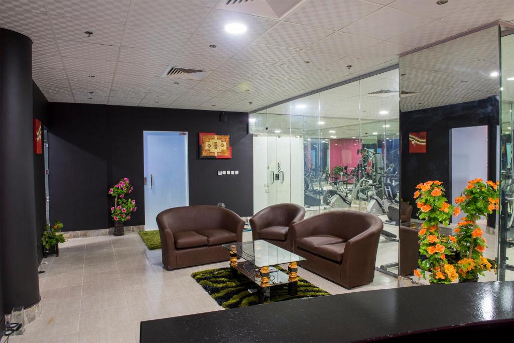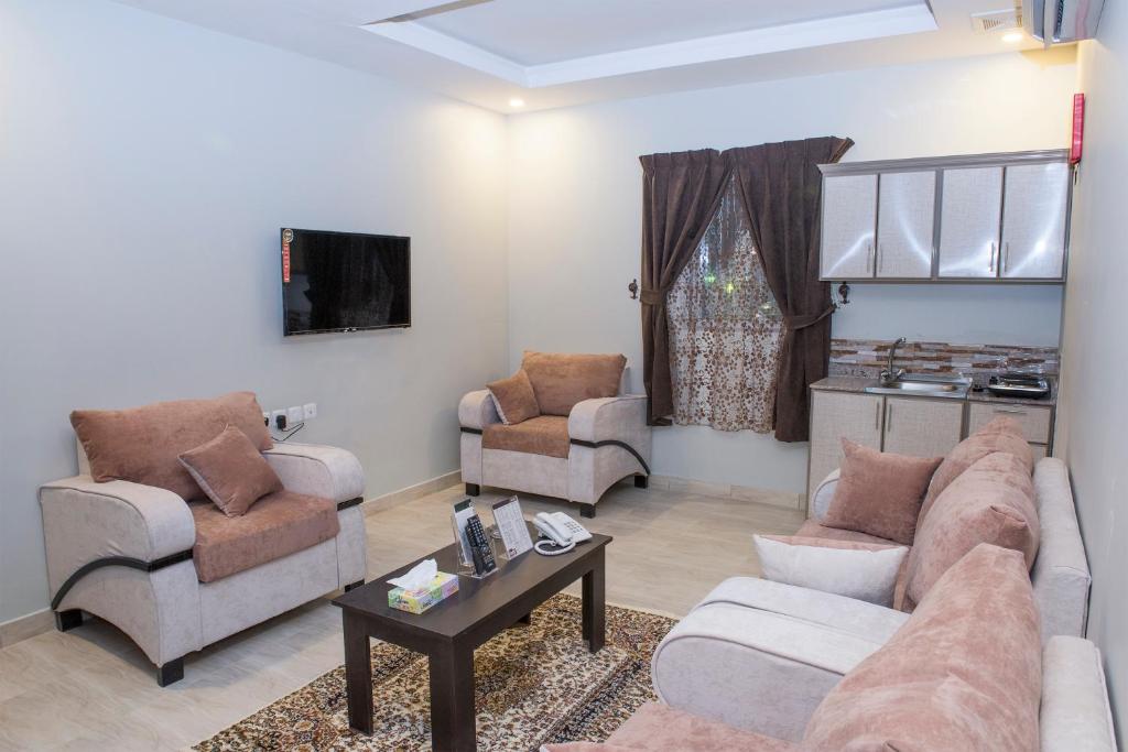 Comfortable Accommodations: Najd Peak Apartment Riyadh in Riyadh offers comfortable rooms with air-conditioning, kitchenettes, and private bathrooms. Each room includes a washing machine, refrigerator, and free toiletries. Exceptional Facilities: Guests can enjoy a sauna, fitness center, and free WiFi in public areas. Additional amenities include a minimarket, hairdresser, and family rooms. Convenient Location: Located 12 mi from King Khalid International Airport, the hotel is near attractions such as Al Nakheel Mall (6.2 mi) and Riyadh Park (9.9 mi). Free on-site private parking is available.