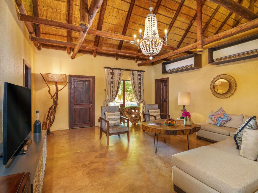Elegant Accommodations: Rooms feature air-conditioning, private bathrooms, and modern amenities. Guests enjoy garden or pool views, terraces, and balconies. Family rooms and ground-floor units cater to all needs. Exceptional Facilities: The resort offers spa facilities, a swimming pool with a view, sauna, fitness center, and water sports. Additional amenities include a hot tub, hammam, and indoor swimming pool. Free WiFi is available throughout the property. Dining Experience: A variety of restaurants serve international, steakhouse, sushi, and local cuisines. Breakfast options include continental, buffet, and à la carte. The family-friendly restaurant caters to all dietary requirements. Convenient Location: Located in Riyadh, the resort is 75 mi from King Khalid International Airport. Nearby attractions include the King Abdullah Park and the King Abdullah Sports City