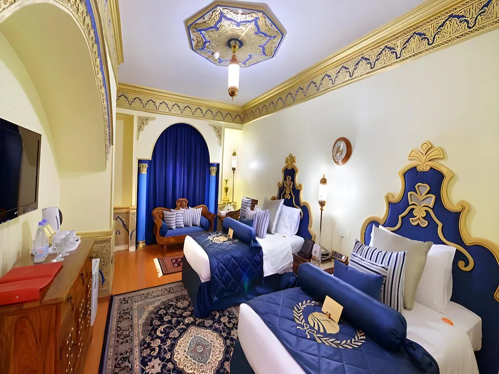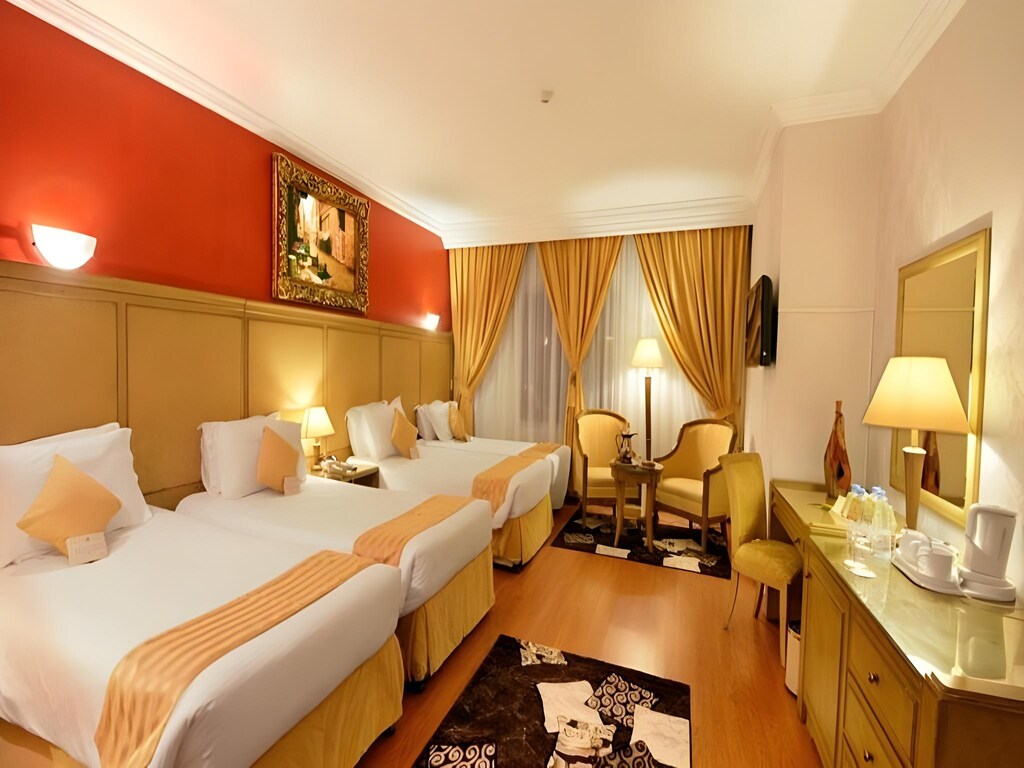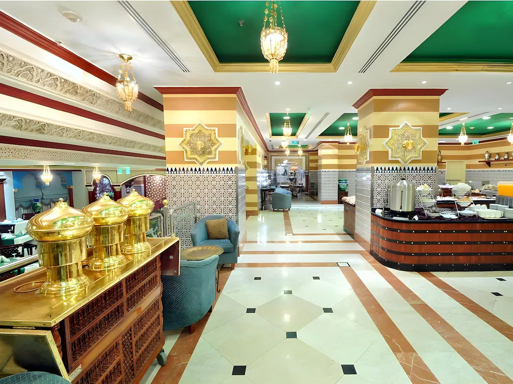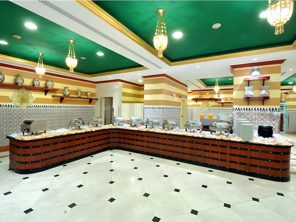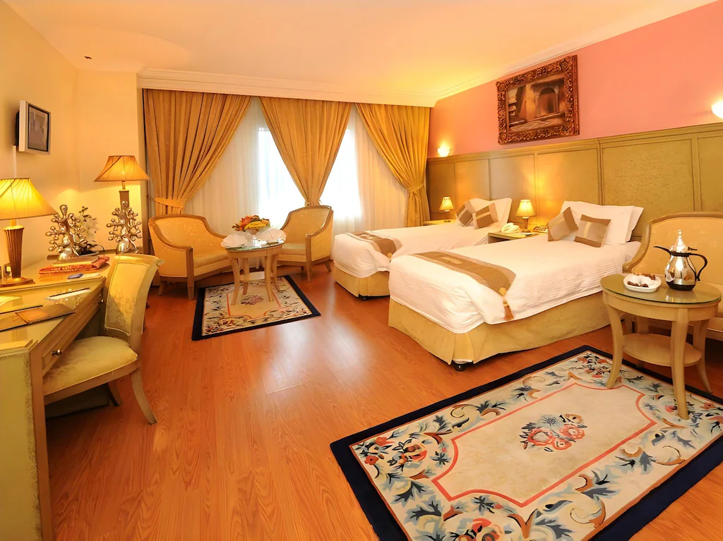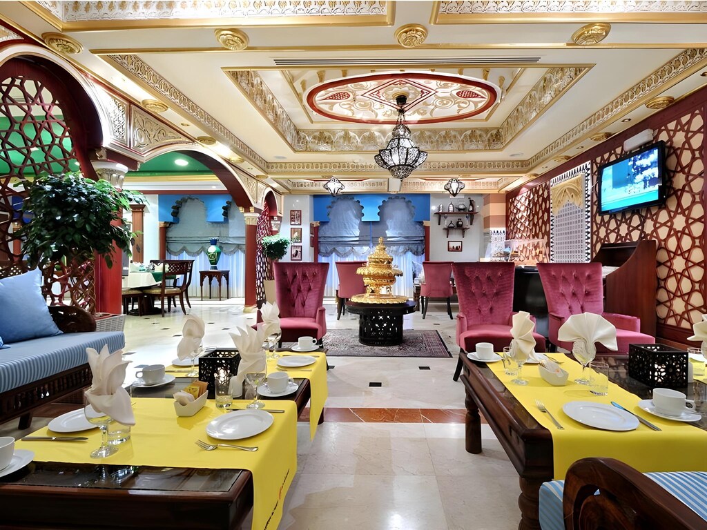 Nozol Al Monawarah is located less than 150 m from the Prophet Mosque. The hotel has a 24-hour front desk offering laundry and ironing. WiFi is provided throughout. The rooms and suites are air conditioned and include a sofa and satellite TV. There is a minibar, safety deposit box, and tea-and-coffee making facilities. The bathroom includes a shower and a hairdryer. There are two restaurants providing international and oriental cuisine, Al Sukariya and Al Andalusia. Masjid al-Quba is less than 15 minutes by car from Nozol Al Monawarah, and the airport is less than 15 km away.