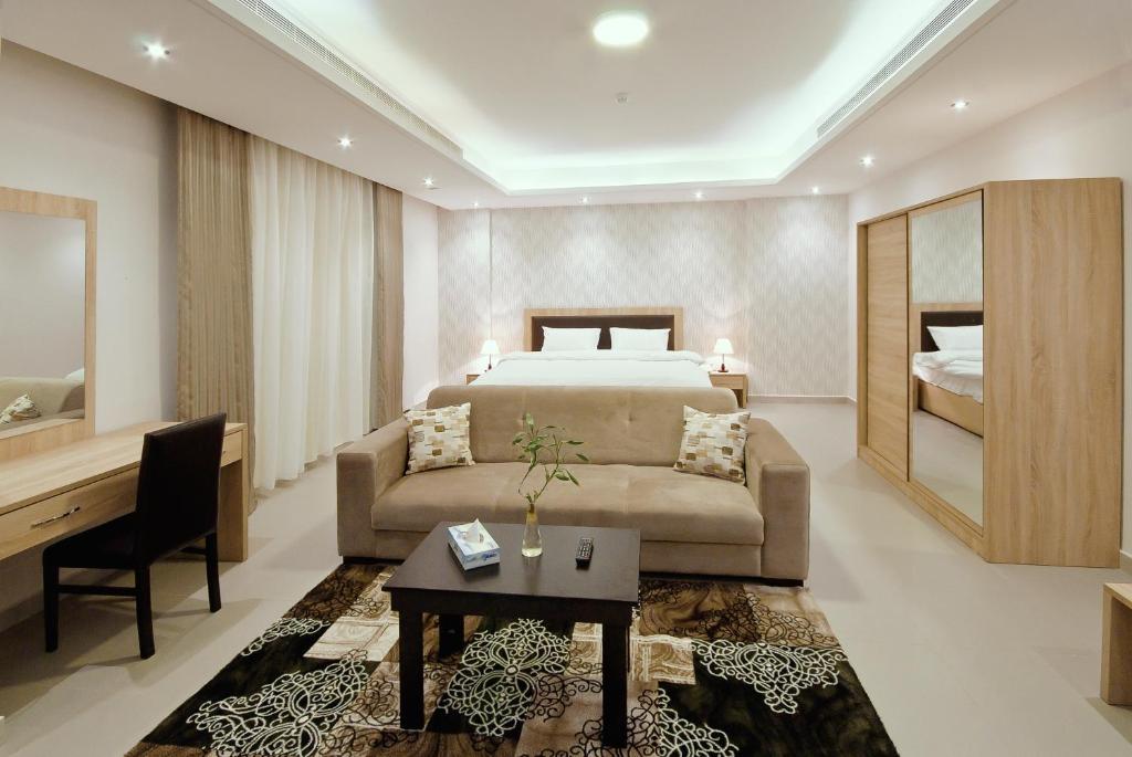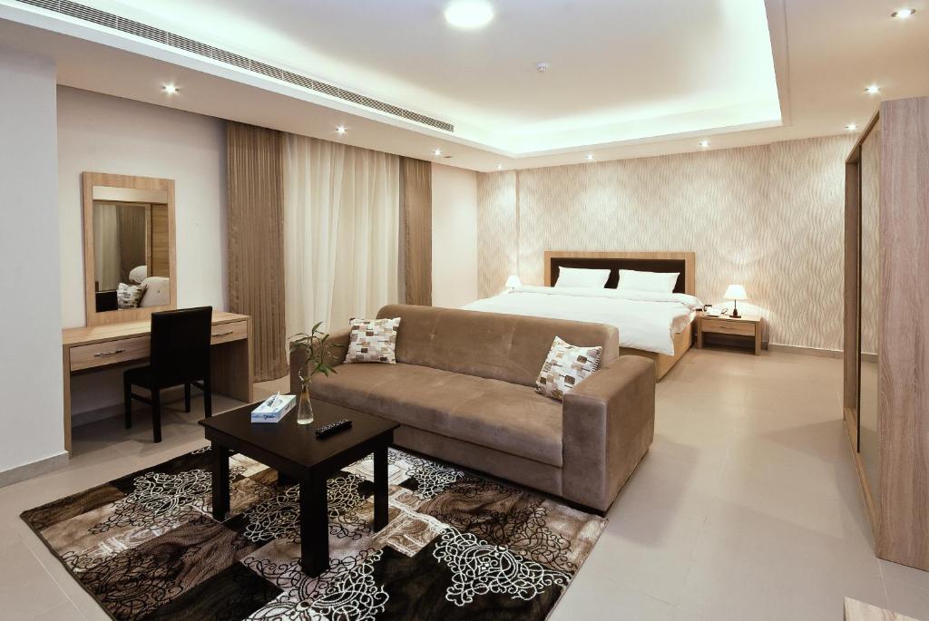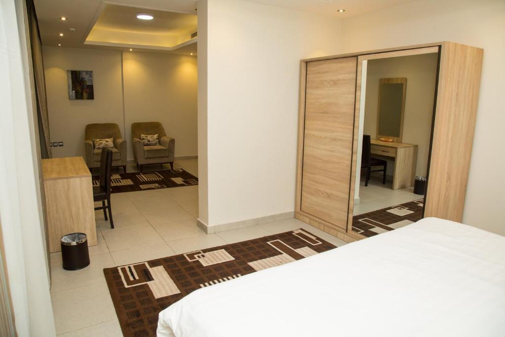 Comfortable Accommodations: Oasis Rise Hotel Apartments in Jeddah offers comfortable aparthotel rooms with air-conditioning, private bathrooms, and modern amenities. Each room includes a work desk, TV, and free WiFi, ensuring a pleasant stay. Convenient Facilities: Guests enjoy free on-site private parking, a 24-hour front desk, and a lounge. Additional services include private check-in and check-out, daily housekeeping, room service, and a minimarket. Prime Location: Located 3.7 mi from Al Andalus Mall and Jeddah Corniche, the aparthotel is also close to attractions such as King Fahad Fountain (6.8 mi) and Jeddah Mall (4.3 mi). King Abdulaziz International Airport is 12 mi away.