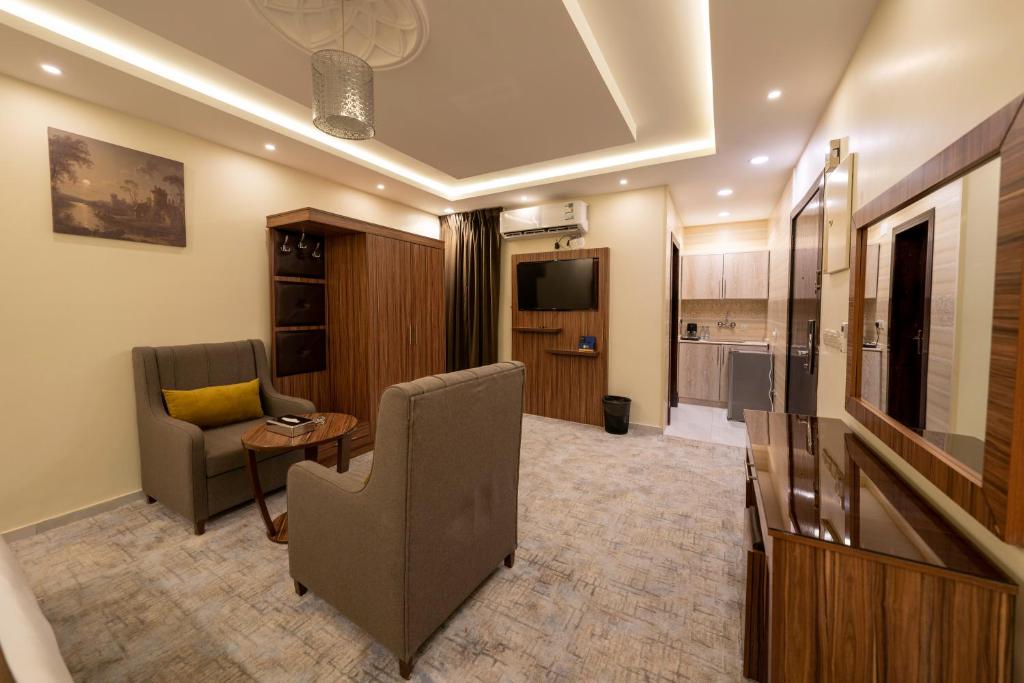 Comfortable Accommodations: The Palace Hotel Suites - Almansak in Abha offers apartment-style rooms with air-conditioning, private bathrooms, and modern amenities. Each room includes a kitchenette, balcony, and terrace, ensuring a pleasant stay. Exceptional Facilities: Guests can enjoy a bar, free WiFi, lounge, and outdoor seating area. Additional facilities include a minimarket, 24-hour front desk, daily housekeeping, and free on-site private parking. Prime Location: Located 8.1 mi from Abha Airport, the property is near attractions such as Al Salam Theme Park (3.1 mi) and Abu Khayal Garden Park (6.8 mi). Guests appreciate the convenient location and excellent service.