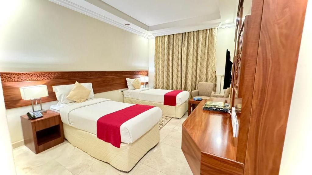 Comfortable Accommodations: فندق رفاهية العزيزية in Al ‘Azīzīyah offers family rooms with air-conditioning, private bathrooms, and modern amenities. Each room includes a tea and coffee maker, walk-in shower, and free toiletries. Essential Facilities: Guests can enjoy a terrace, bar, and free WiFi. Additional facilities include a minimarket, outdoor seating area, picnic area, and hairdresser/beautician. Convenient Services: The hotel provides private check-in and check-out, a 24-hour front desk, room service, and express services. Paid on-site parking is available. Local Attractions: Um AlQura University is a 6-minute walk away, while Madhbaḩ Ismā‘īl lies 0.6 mi from the property. Masjid Al Haram is 3.7 mi distant, with other attractions within 6.2 mi. King Abdulaziz International Airport is 60 mi from the hotel.