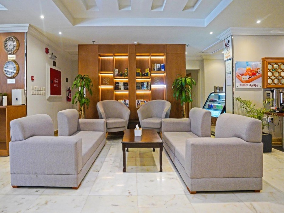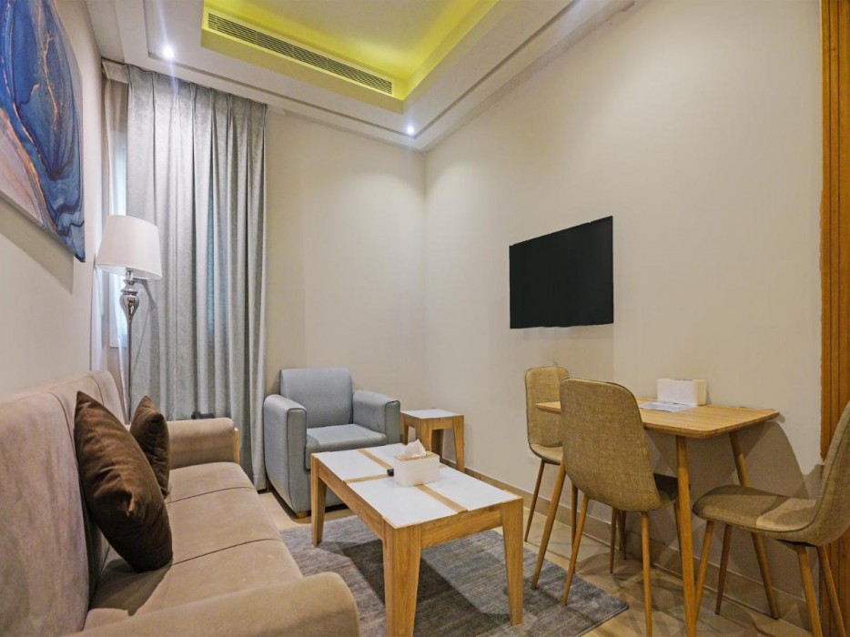 Comfortable Accommodations: Ram Jeddah in Jeddah offers aparthotel-style accommodations with private check-in and check-out services, a lounge, and a 24-hour front desk. Each unit includes air-conditioning, a kitchenette, balcony, and a private bathroom with a walk-in shower. Exceptional Facilities: Guests enjoy free WiFi, a bar, and an outdoor seating area. Additional amenities include a minimarket, hairdresser/beautician, family rooms, full-day security, and room service. Free on-site private parking is available. Prime Location: Located 5 mi from King Abdulaziz International Airport, Ram Jeddah is near Mall of Arabia (3.1 mi), Jeddah Mall (5.6 mi), and Jeddah Corniche (8.1 mi). Guests appreciate the attentive staff, convenient location, and on-site restaurant.