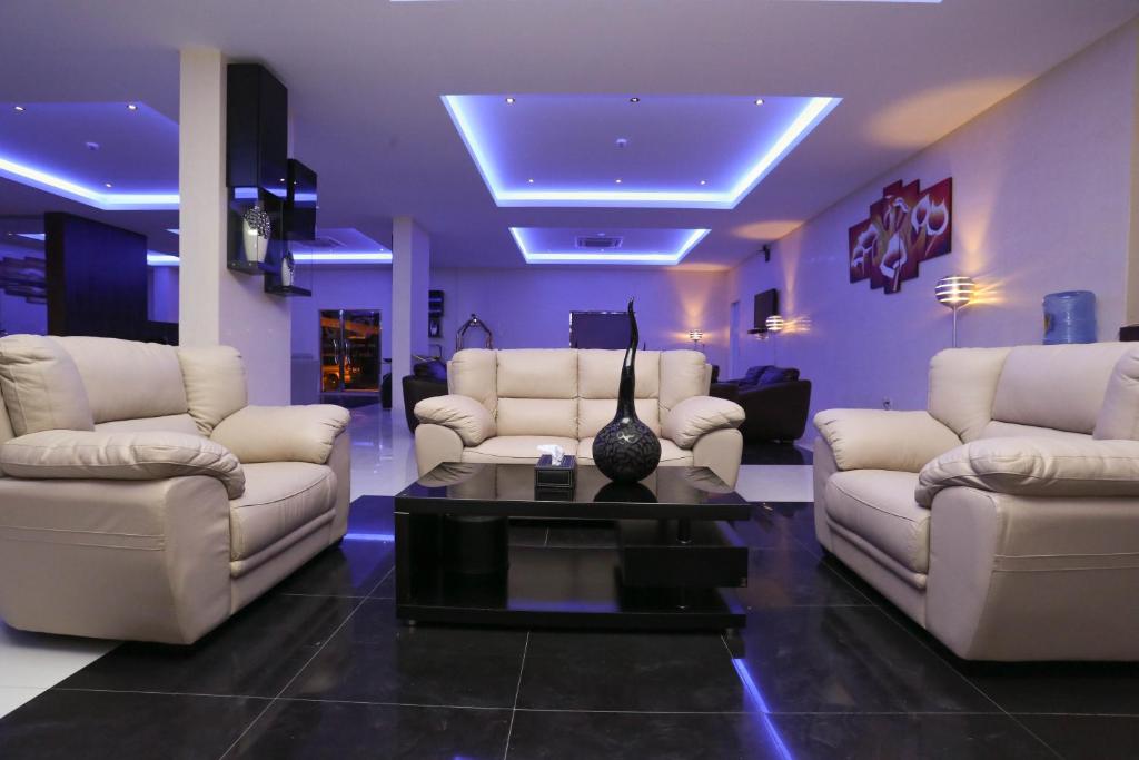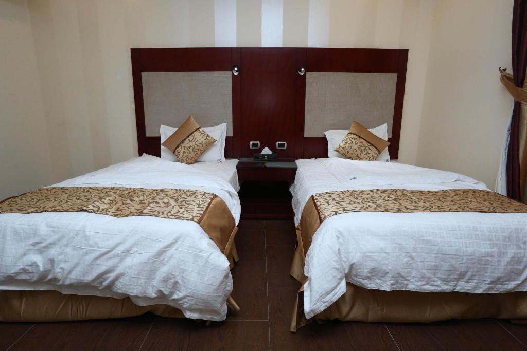 Comfortable Accommodations: Raoum Inn serviced Apartments-Hafrelbatin in Hafr Al Baten offers aparthotel-style accommodations with free WiFi, air-conditioning, and a kitchenette. Each unit includes a bathrobe, walk-in shower, and city views. Convenient Facilities: Guests benefit from private and express check-in and check-out services, a lounge, elevator, 24-hour front desk, daily housekeeping, family rooms, room service, and luggage storage. Free on-site parking is available. Comfortable Amenities: Rooms feature a kitchen, bath, bidet, hairdryer, refrigerator, electric kettle, TV, and free toiletries. Additional amenities include a seating area and carpeted floors. Location and Accessibility: Located 18 mi from Al Qaisumah-Hafar Al Batin Airport, the aparthotel provides easy access to local attractions.