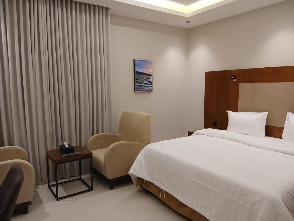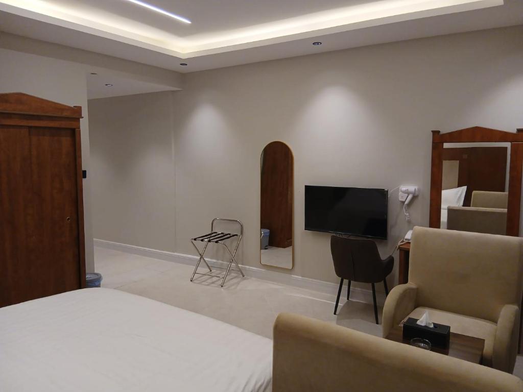 Comfortable Accommodations: Raoum Inn Serviced Apartments-Shaqraa in Shaqra offers family rooms with air-conditioning, balconies, and private bathrooms. Each room includes a kitchen, bidet, and free toiletries. Essential Facilities: Guests enjoy free WiFi, a elevator, 24-hour front desk, full-day security, and room service. Free on-site private parking is available. Additional Amenities: Rooms feature bathrobes, walk-in showers, refrigerators, microwaves, and TVs. Additional amenities include sofa beds, seating areas, and dining areas. Location and Access: Located 96 mi from Dawadmi Airport, the hotel provides easy access to local attractions.