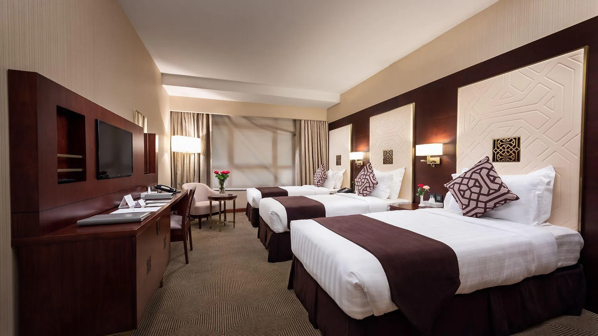Situated 80 m from Al-Masjid an-Nabawi, Rua Al Madinah Hotel offers accommodation with free WiFi in Al Madinah. The property is located 100 m from Al Baqia Cemetry. The property provides a 24-hour front desk. The units in the hotel are fitted with a flat-screen TV. Rooms are complete with a private bathroom equipped with a shower, while some rooms will provide you with a seating area and partial haram views. All units will provide guests with a wardrobe and a kettle. Old Bazaar is 800 m from Rua Al Madinah Hotel, while Mazaya Mall is 2.2 km away. The nearest airport is Prince Mohammad bin Abdulaziz International Airport, 14 km from the property.