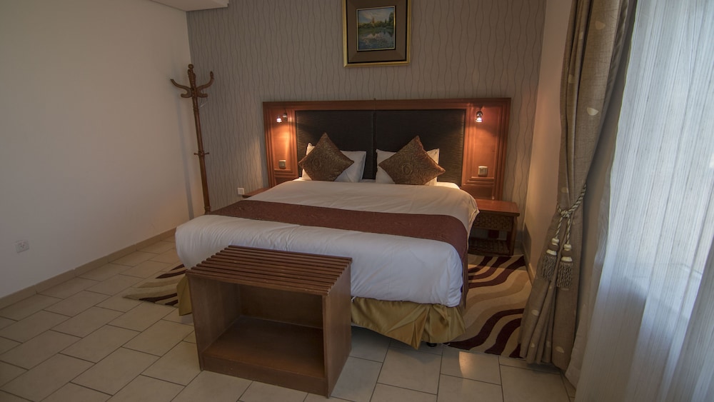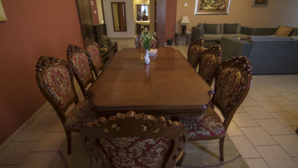 Just 2.5 mi away from King Fahad Garden, Sadeem Hotel Suites is located in Taif. It offers self-catering accommodations with free Wi-Fi. Guests have access to an indoor pool and sauna at an added fee. All apartments at Sadeem Hotel Suites feature a modern décor. Each apartment offers a living room with a dining table and a kitchen complete with a microwave and an oven. Facilities include a flat-screen TV, an ironing board and a telephone. Coffee, light snacks and desserts can be found at the snack bar. Dry cleaning, laundry and ironing services can be arranged upon request. Ta’if Airport is located 16 mi away from Sadeem Hotel Suites. An airport shuttle is available at an added fee. Free private parking is possible on site.