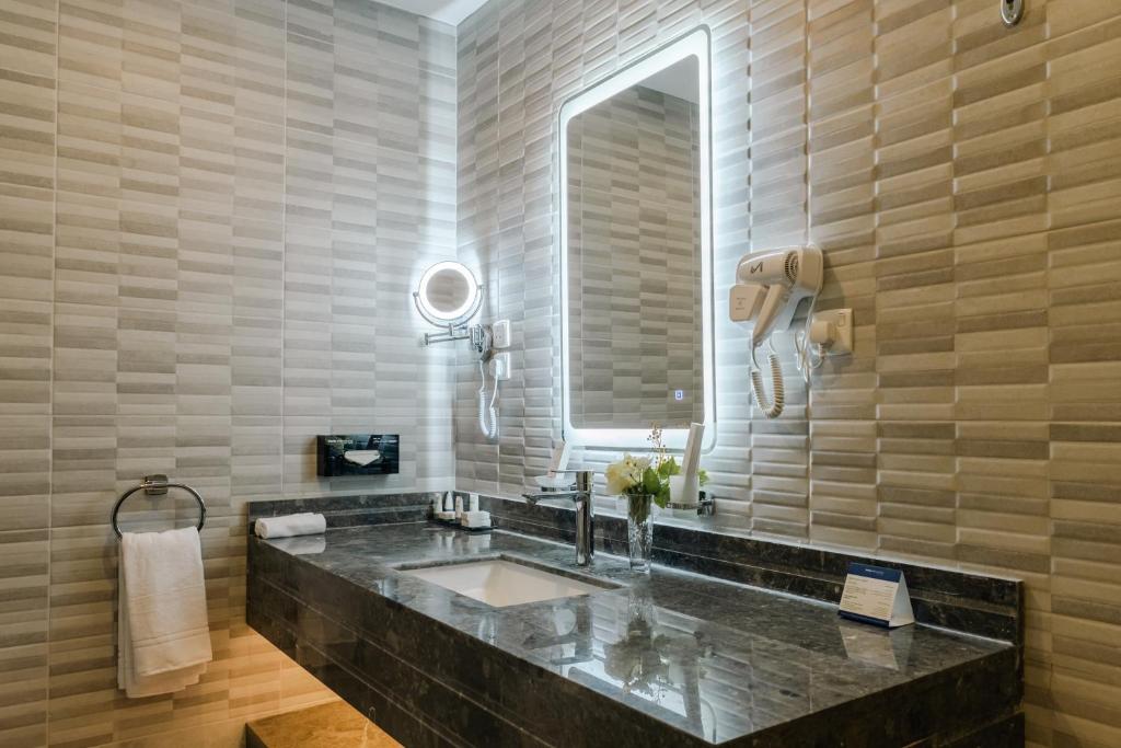 Comfortable Accommodations: Swiss International Taif in Taif offers well-appointed rooms with air-conditioning, private bathrooms, and modern amenities. Guests enjoy free WiFi, flat-screen TVs, and comfortable seating areas. Exceptional Facilities: The hotel features a sauna, fitness center, terrace, and restaurant. Additional services include a 24-hour front desk, concierge, and live music. Free on-site private parking is available. Dining Experience: A variety of breakfast options are served, including continental, American, and vegetarian. The family-friendly restaurant offers international cuisines with halal, vegetarian, and gluten-free choices. Prime Location: Located 23 mi from Ta'if Regional Airport, the hotel is near attractions such as Jouri Mall (8.7 mi) and King Fahad Garden (8.7 mi). Guests appreciate the convenient location and excellent service.