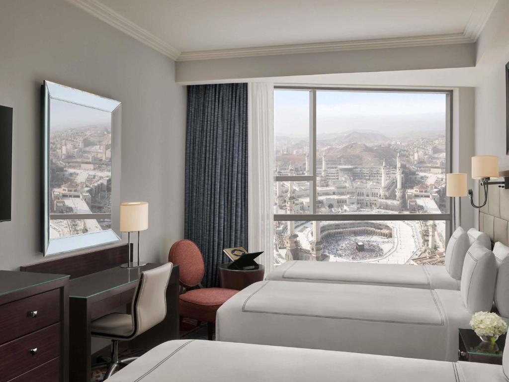 As part of the prestigious Abraj Al Bait complex, the deluxe Swissotel Makkah is a contemporary five-star hotel located only 328 feet from the holy Masjid Al Haraam, overlooking the Ka’aba, as well as the entire Masjid.