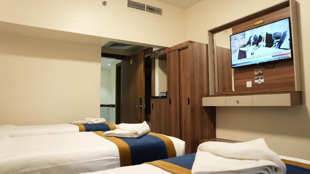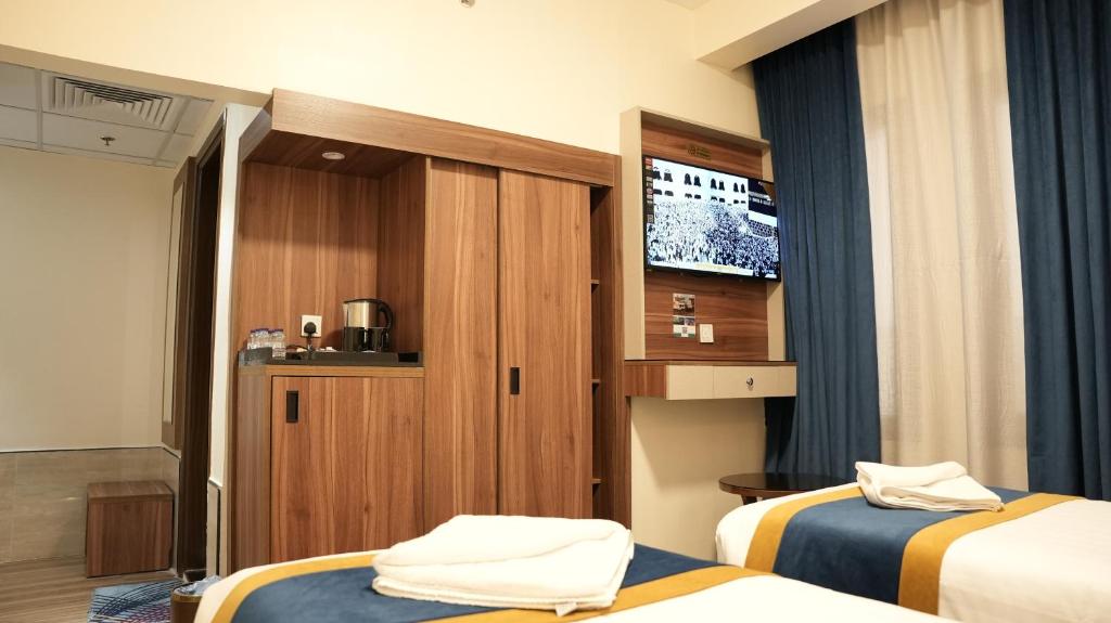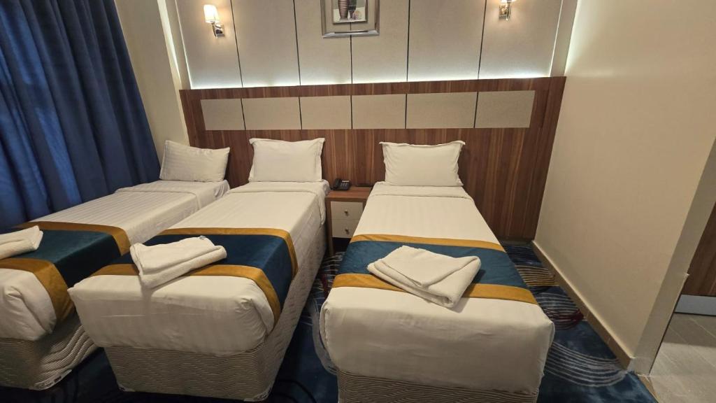 Comfortable Accommodations: Tabah Towers Hotel in Al Madinah offers family rooms with air-conditioning, private bathrooms, and free WiFi. Each room includes a bath, bidet, walk-in shower, free toiletries, TV, electric kettle, and wardrobe.