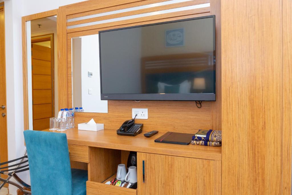 Tulip Inn Al Dar Madinah offers rooms with free WiFi in Al Madinah. The property is less than 5 minutes walk from Al-Masjid an-Nabawi , 1.6 mi from Mazaya Mall and 2 mi from Al Baqia Cemetry. The property is 0.7 mi from the city Central Madinah. At the hotel, each room comes with a desk, a flat screen TV and a private bathroom. Guest rooms have a wardrobe and coffee tray. An international buffet breakfast can be enjoyed at the property. Snacks and beverages are served in the lobby. The reception can provide advice on the area in order to help guests plan their day. The property is 1 mi from Emarat Al Madinah and 2.4 mi from Madinah Municipality, while Uhod Hospital is 5.3 mi and Al Ansaar General Hospital is 1.8 mi away.