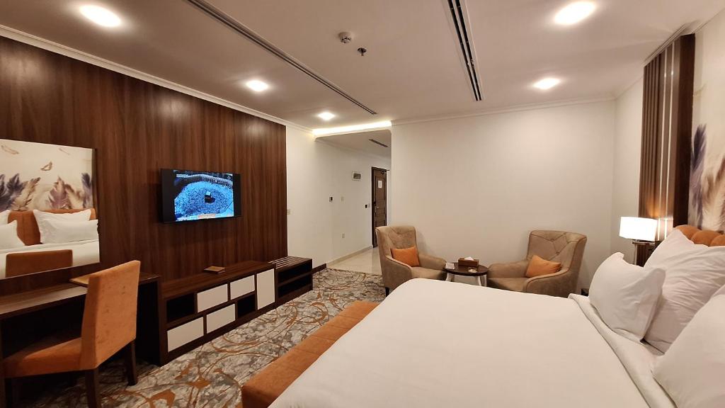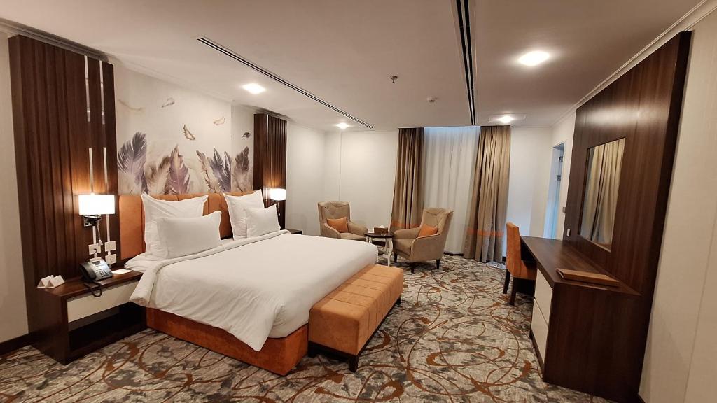 Comfortable Accommodations: Tulip Plaza By LPC Hotels & Resorts in Hafr Al Baten offers family rooms with air-conditioning, private bathrooms, and modern amenities. Each room includes a tea and coffee maker, mini-bar, and TV. Dining Experience: The family-friendly restaurant serves local and international cuisines with halal, vegetarian, and gluten-free options. Guests can enjoy lunch and dinner in a modern ambiance. Convenient Facilities: The hotel provides free WiFi, a elevator, 24-hour front desk, concierge service, and free on-site private parking. Additional services include room service, car hire, and luggage storage. Accessible Location: Located 19 mi from Al Qaisumah-Hafar Al Batin Airport, the hotel offers easy access to local attractions