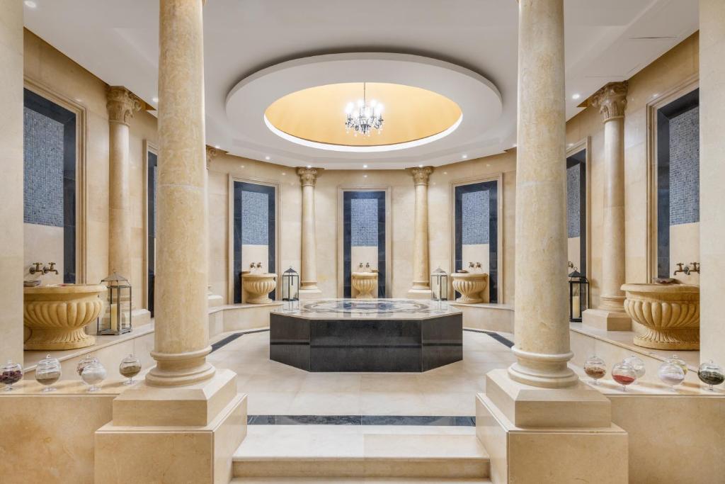 The hotel features ultra-modern rooms and royal suites with panoramic floor-to-ceiling windows, alongside world-class facilities including infinity pools and fine-dining restaurants. Booking through Rahletna – your premier hotel booking company in Saudi Arabia ensures you receive exclusive rates and a seamless luxury experience.
