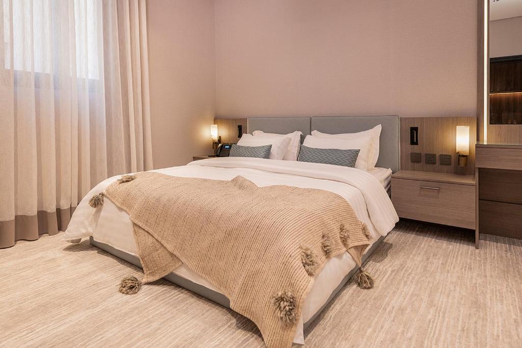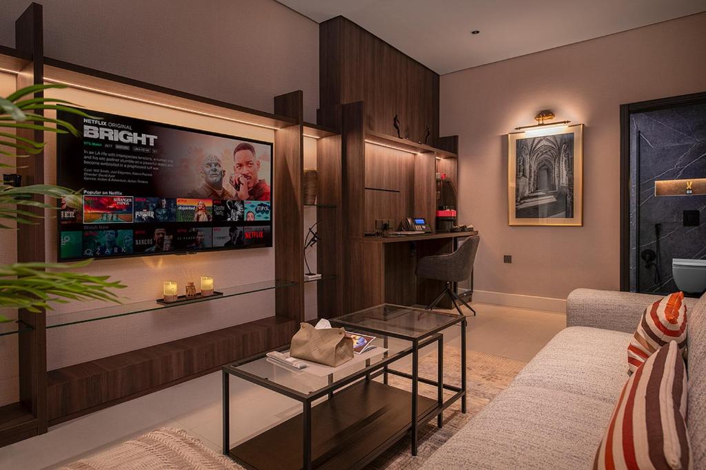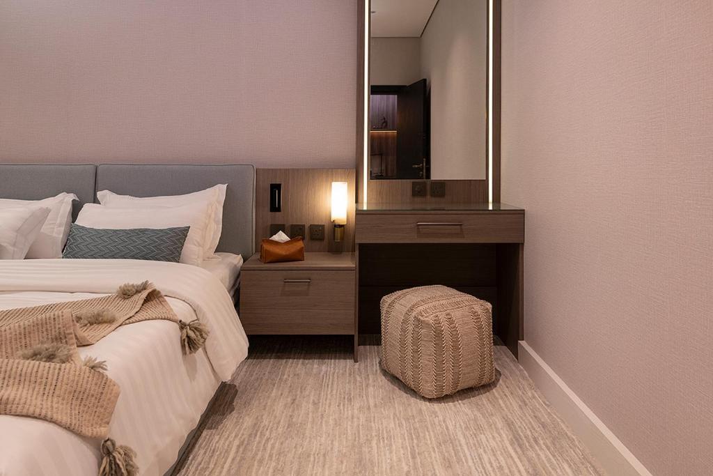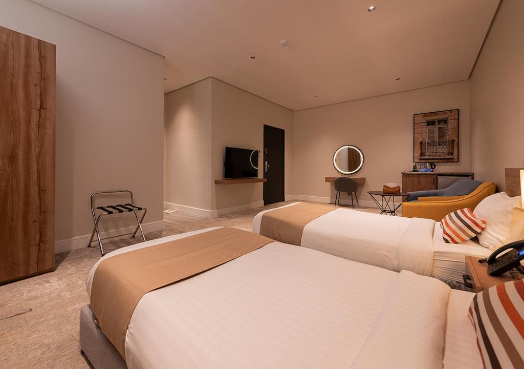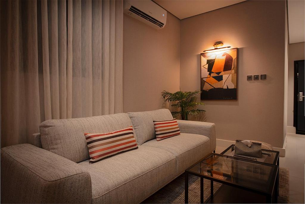 Comfortable Accommodations: Viola Gardens Residence Serviced apartments in Riyadh offer aparthotel-style living with free WiFi, air-conditioning, and private bathrooms. Each room includes bathrobes, a hairdryer, and free toiletries. Convenient Facilities: Guests enjoy a elevator, 24-hour front desk, coffee shop, and family rooms. Free on-site private parking is available. Additional amenities include a hot tub, kitchenette, and soundproofing. Prime Location: Located 9.9 mi from King Khalid International Airport, the aparthotel is near attractions such as Al Nakheel Mall (3.7 mi) and Riyadh Park (8.1 mi). Guests appreciate the room cleanliness, attentive staff, and convenient location.