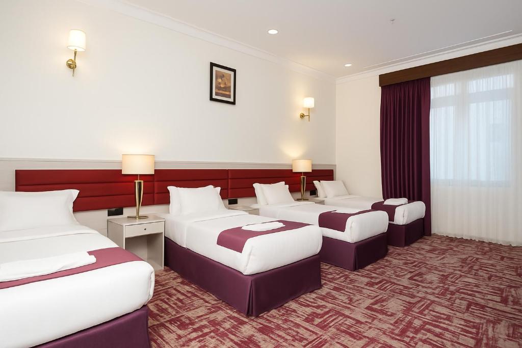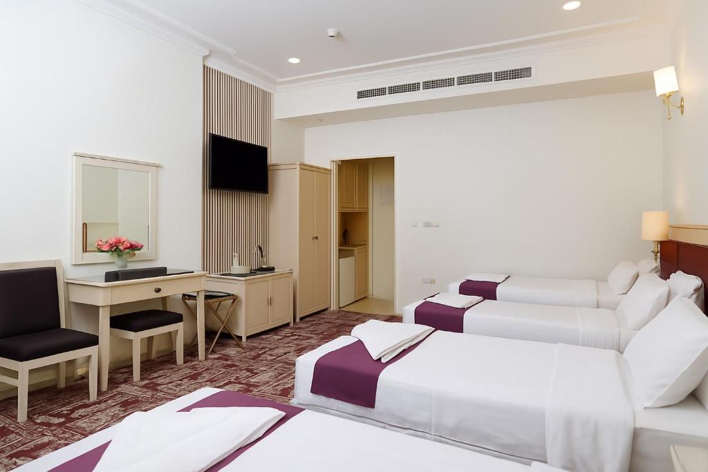 Comfortable Accommodations: Zahrat AL Lavender Hotel in Makkah offers family rooms with air-conditioning, private bathrooms, and city views. Each room includes a kitchenette, refrigerator, and free toiletries. Essential Facilities: Guests enjoy free WiFi, a elevator, 24-hour front desk, and room service. Additional amenities include a fireplace, dining table, and TV. Convenient Location: Located 57 mi from King Abdulaziz International Airport, the hotel is an 18-minute walk from Masjid Al Haram and close to Zamzam Well (0.9 mi) and Makkah Museum (2.7 mi).